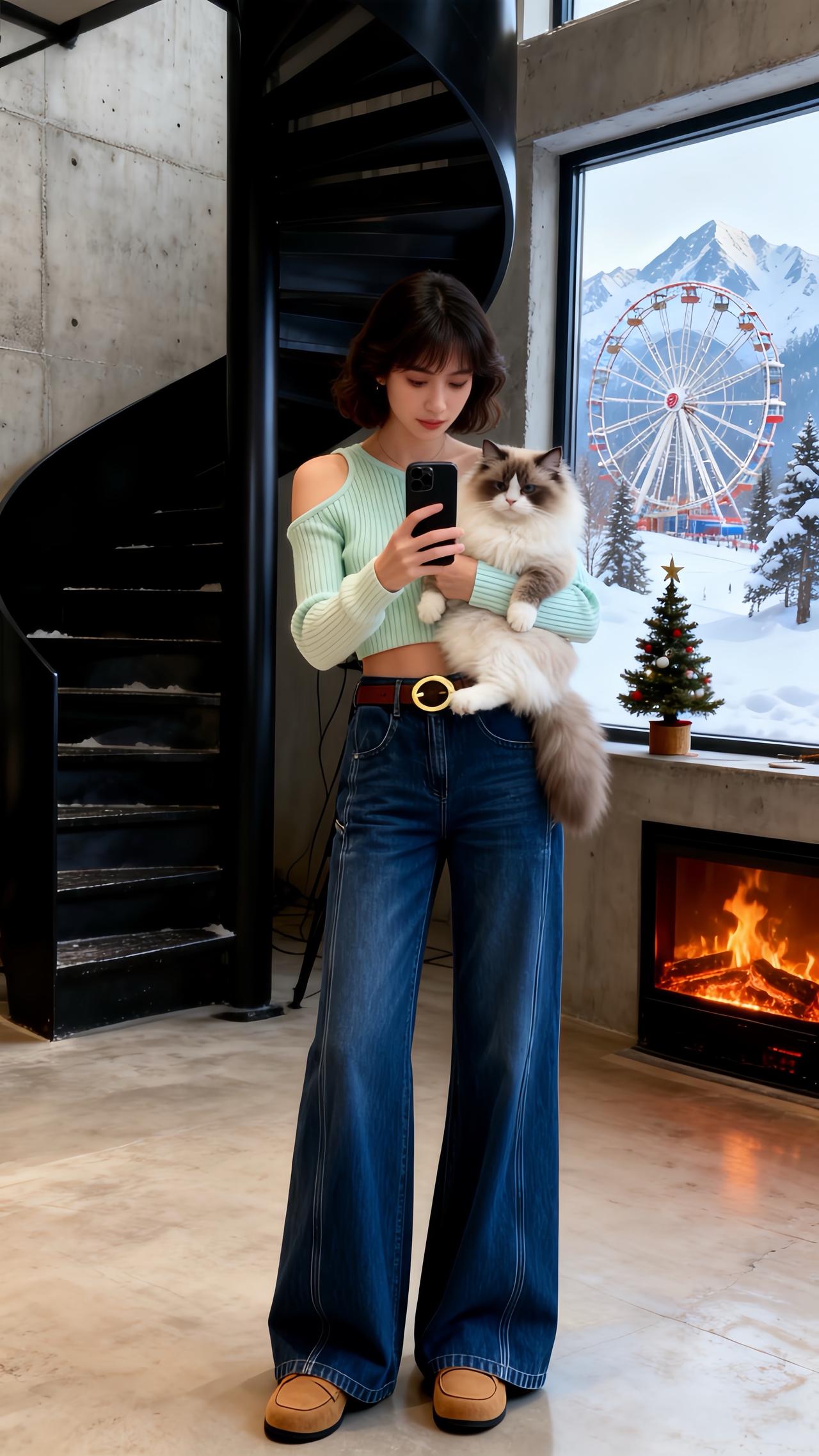 牛仔裤 牛仔裤穿搭 小个子穿搭 加绒阔腿裤 冬季穿搭