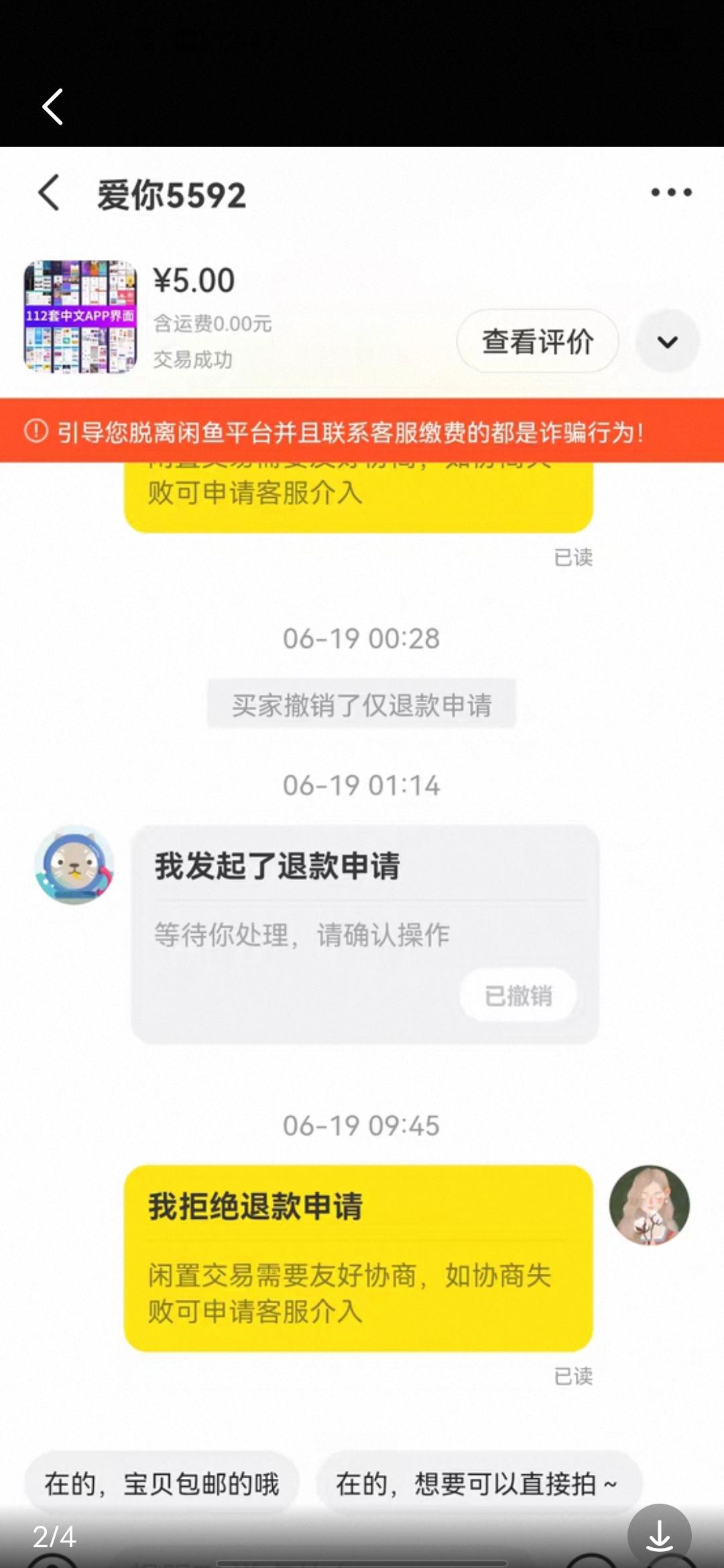 哈哈 竟然仅退款到某鱼了 。此人毕竟是个惯犯 多平台申请仅退款 爱占小便宜的人真多 跟个网络乞丐一样