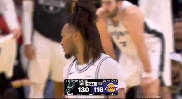 马刺132比119大胜湖人!马刺7人得分上双,湖人全场被没有文班亚马的马刺压制!马刺彻底限制住湖人进攻! 湖人真该交易了!特别是到了季后赛防守拉跨会被无限放大! 东契奇空砍35分!詹姆斯空砍19分15个篮板8助攻!替补奇兵斯玛特得到26分!里夫斯仅得15分,这场球彻底把交易的价值打没了!湖人面对马刺队的突破真是毫无办法! 马刺队:斯蒂芬卡斯尔(卡乔丹)成了马刺队的大腿!狂砍30分10板6助攻!
