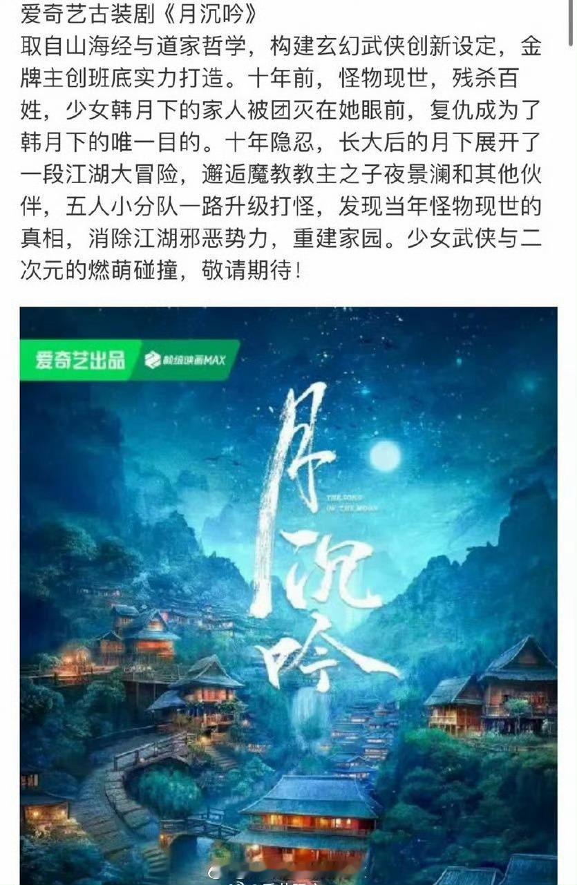🍉丁禹兮新饼🥝武侠剧《月沉吟》四人小分队一路升级打怪,发现当年怪物现世的真相,消除世家邪恶势力,重建家园