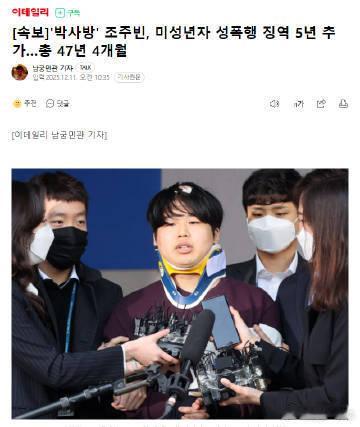 “N号房”主犯赵主彬因对未成年人实施性暴力,追加5年有期徒刑,共47年4个月有期