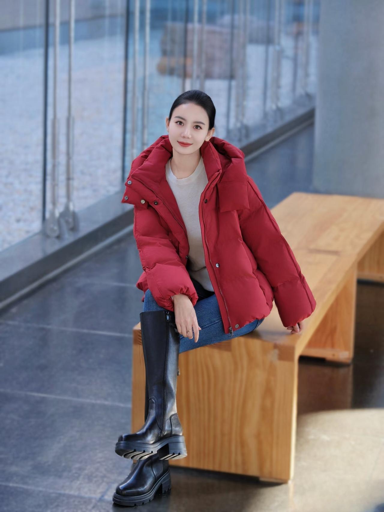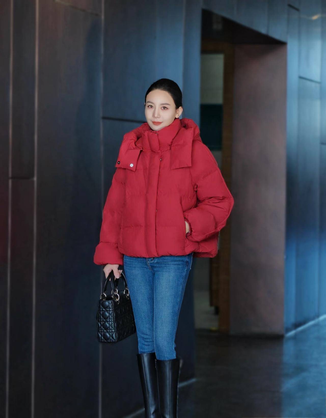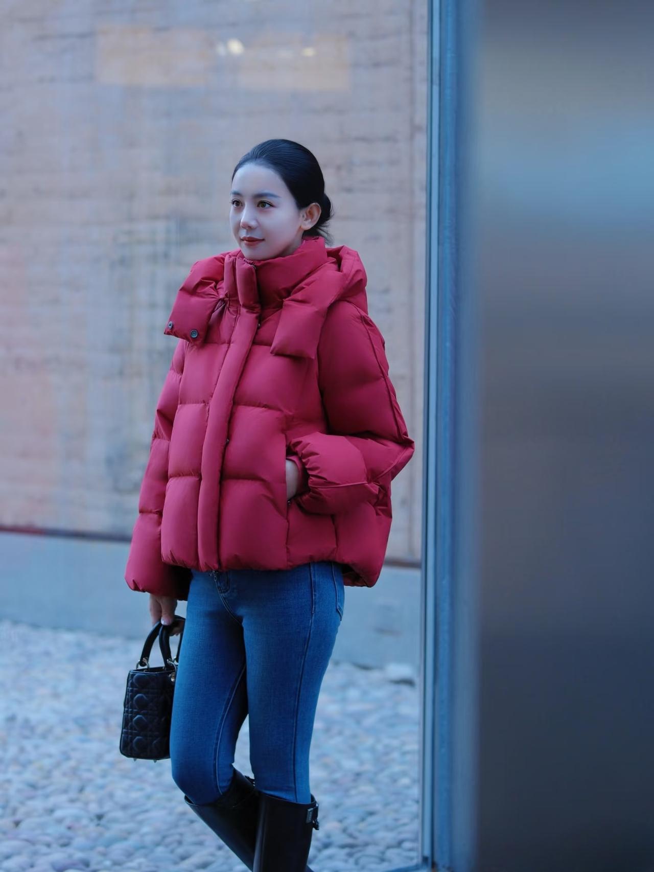 有哪些女生日常好看穿搭可以借鉴红羽绒服搭配牛仔裤和黑色高筒靴,既保暖又时尚好看!