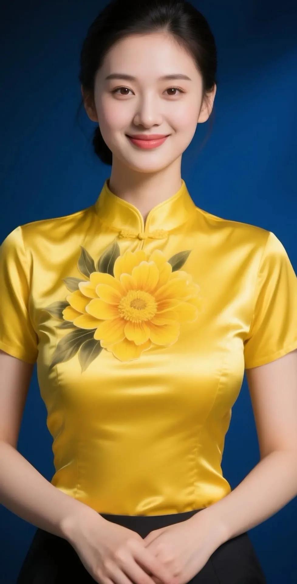夏日清新少女,微笑弯腰,绿意盎然背景,甜美可爱!🌿😊