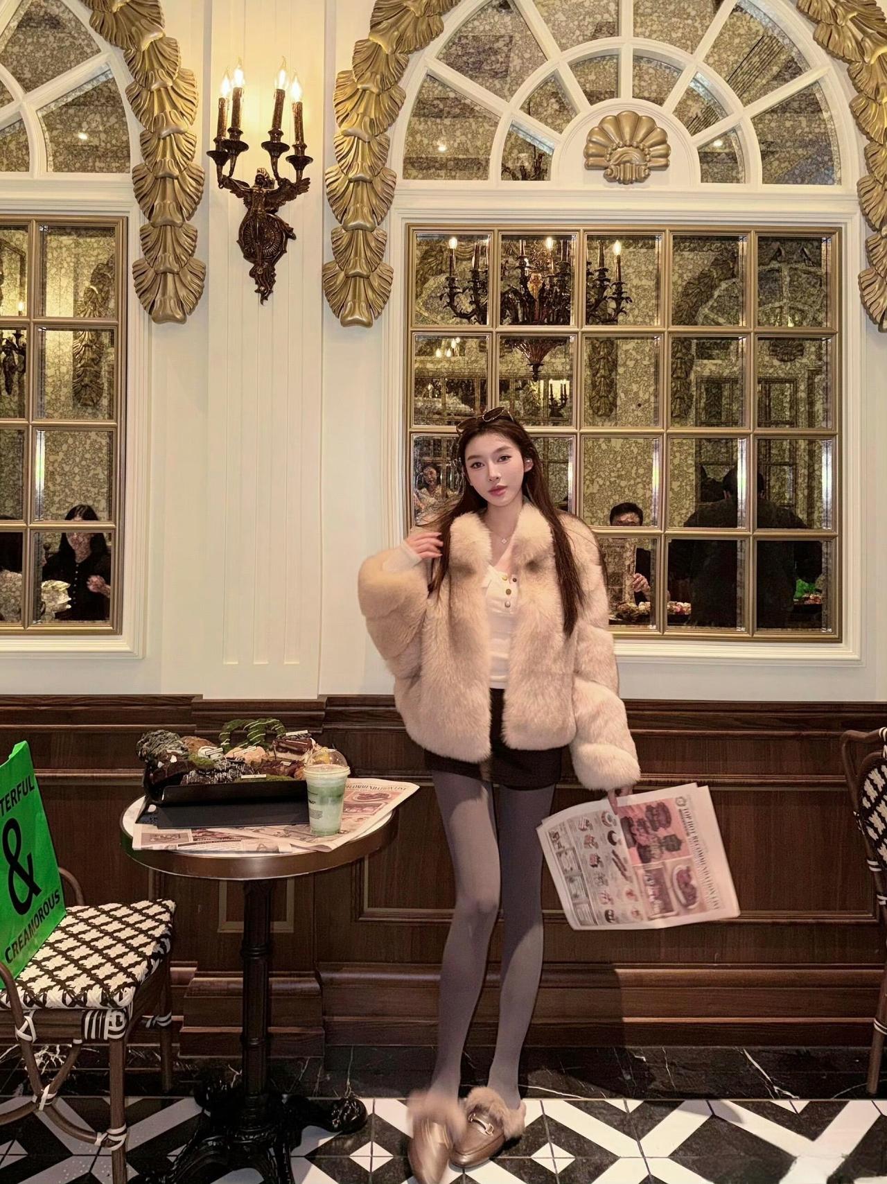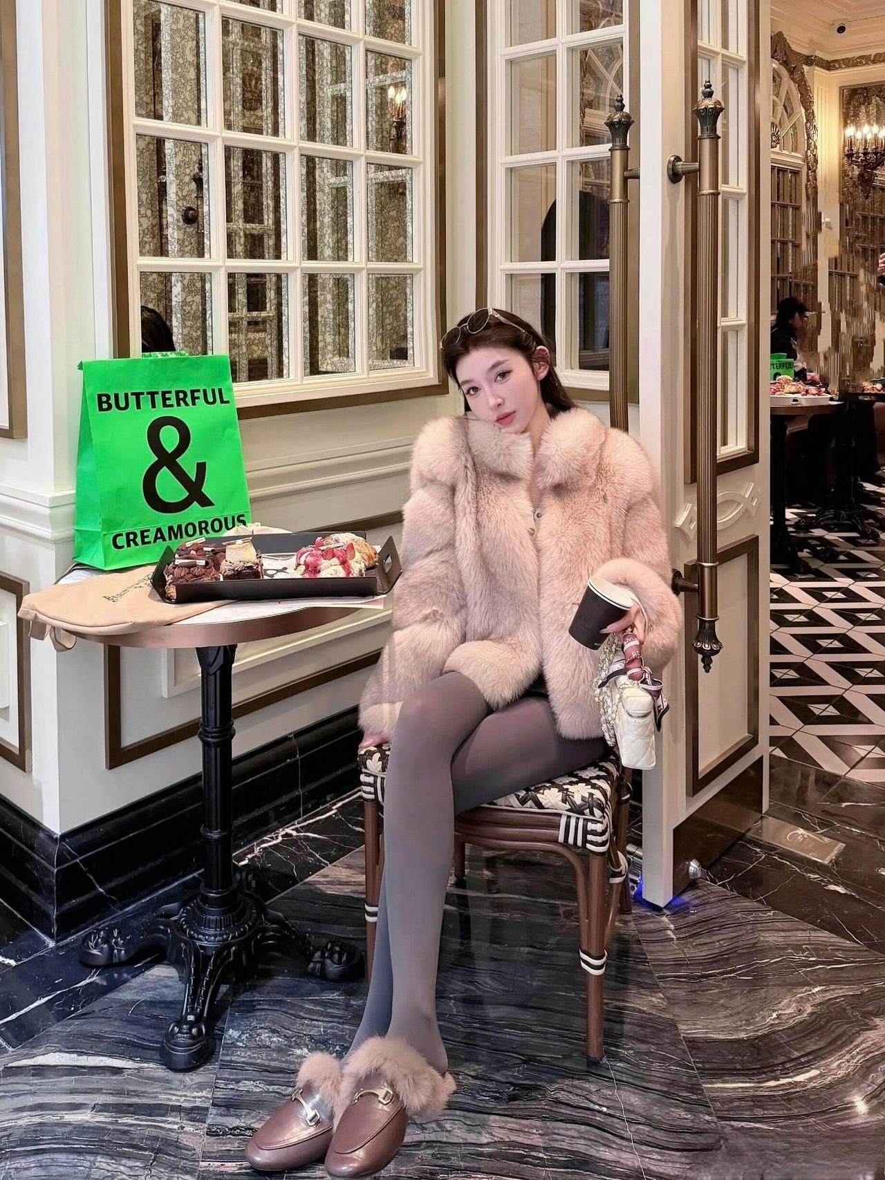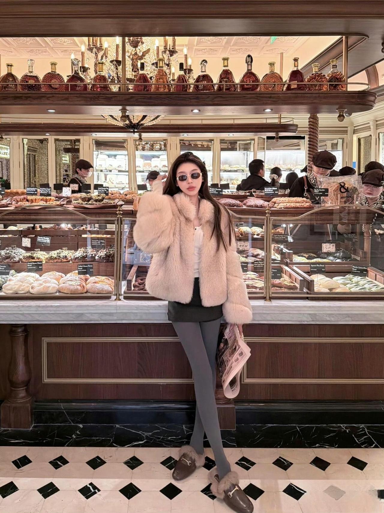 这套穿搭是奢华温柔的冬日甜贵风,保暖与精致感都很突出。浅米色毛绒外套自带贵气质感,蓬松版型营造出慵懒甜美的氛围;内搭白色吊带+黑色短裙,简约基础款中和了外套的厚重感,让造型更显轻盈。 搭配毛绒乐福鞋与外套材质呼应,强化了冬日温暖感;墨镜+报纸道具增添了时尚随性的细节,让贵气感更自然不刻意。能充分展现穿着者奢华温柔的甜贵魅力。秋冬毛绒绒穿搭