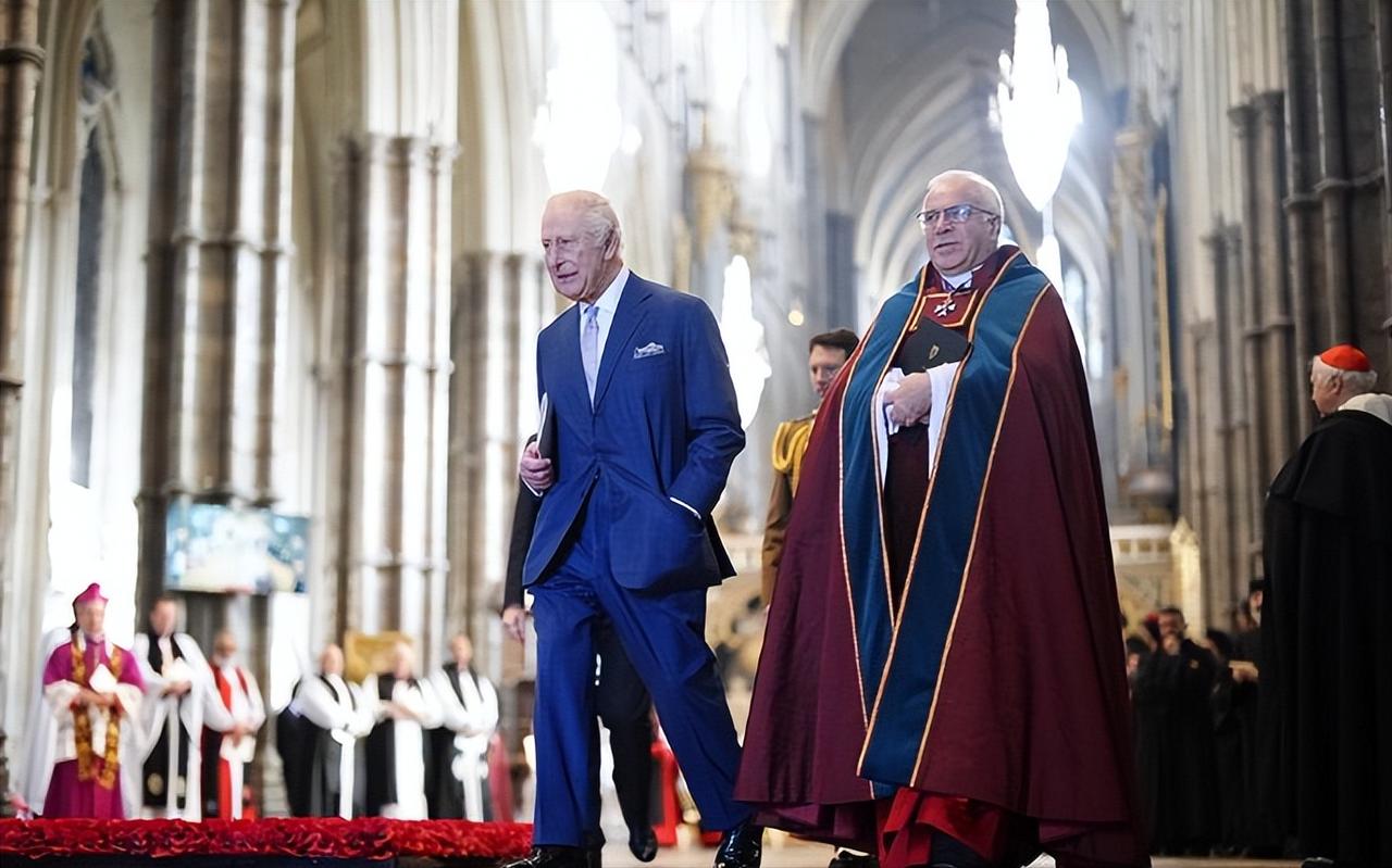 12月10日,查尔斯国王在伦敦威斯敏斯特大教堂出席降临节活动。 独自出席活动的查尔斯国王,穿着藏蓝色西装,头发全白了,但是发量还是比儿子威廉王储多了好多,76岁的他脊背也弯曲了不少。 但是精神矍铄,状态很不错。笑起来的时候,还带着点儿返老还童的老小孩的调皮可爱!
