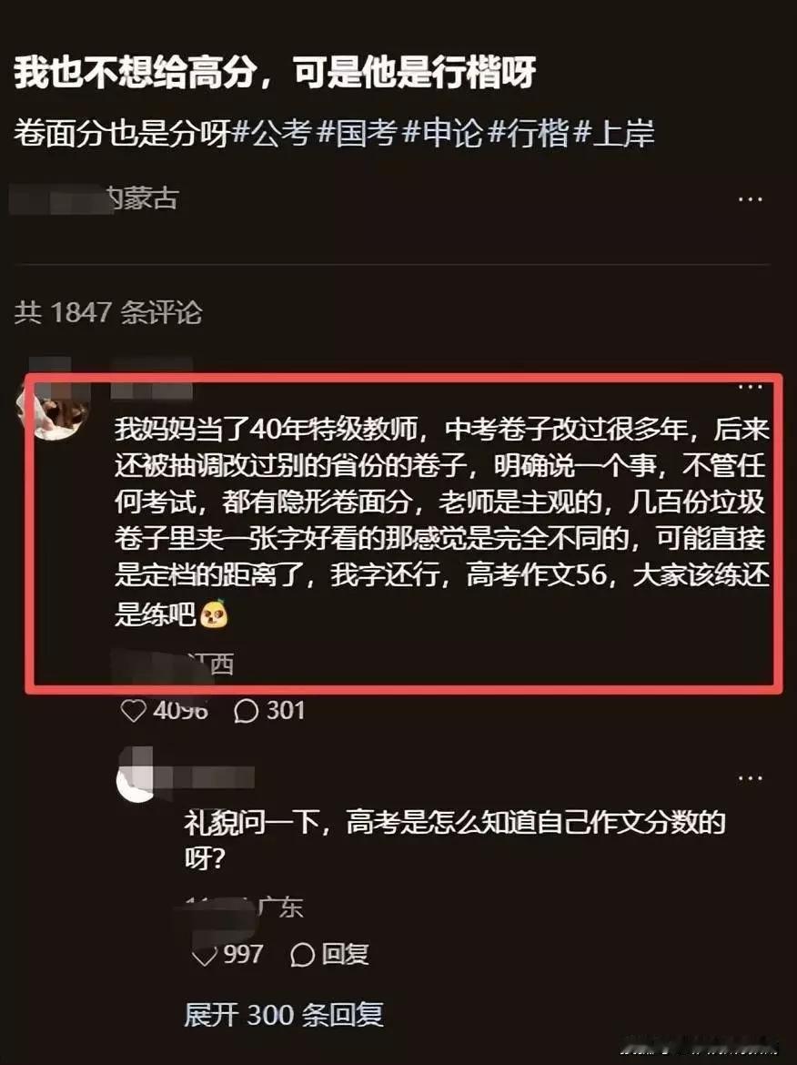 “我也不想给高分,可这是行楷”,女生高分申论试卷火了,阅卷老师赞不绝口 一笔一划见功底,一撇一捺显乾坤。当这份申论试卷被扫描进阅卷系统的那一刻,密密麻麻的标准答案里,它就像一股清流,瞬间抓住了阅卷老师的眼球。 要知道,申论阅卷的高压环境里,老师们每天要盯着上千份字迹潦草、龙飞凤舞的卷子,有的字连蒙带猜都认不出,耐心早就被磨得所剩无几。可这份行楷答卷不一样,笔画舒展却不拖沓,结构工整却不死板,每一个字都规规矩矩站在格子里,连标点符号都像训练过一样,整整齐齐排成队。 有阅卷老师直言:“我也不想给高分,可实在找不到扣分的理由!” 要知道,申论的采分点本就藏在文字里,清晰的字迹等于给老师递了一把“找分钥匙”,而那些潦草的答卷,往往是把采分点埋进了“天书”里,哪怕内容再好,也容易被遗漏。 这哪里是写字,分明是给努力安上了看得见的翅膀。多少人觉得申论拼的是素材和文采,却忽略了字迹是卷面的第一张名片。这个女生的火,从来不是偶然。那背后是日复一日的临摹,是握笔磨出的薄茧,是别人在刷短视频、聊八卦时,她在书桌前一笔一画的坚持。 这世上哪有什么横空出世的幸运,不过是脚踏实地的努力。当我们还在抱怨“阅卷老师有偏见”时,有人已经用一笔好字,悄悄为自己的人生铺上了红毯。 试问,这样的努力,谁看了不心动?那些说“字好看没用”的人,真的看懂了这份答卷背后的用心吗?评论区聊聊,你觉得申论字迹到底有多重要?热点话题 申论高分如何做