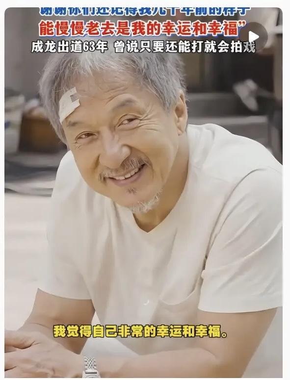 “龙叔老了”!扎扎实实戳中了我的泪点,现在71岁的成龙白发苍苍,夹戴着老花眼镜,退去明星光环,他就是个老年人。那个曾经飞檐走壁的超人,那个一打一群坏人的银幕英雄,那个给我们带来无数欢乐的功夫明星真的老了!略有不敢相信,10年前看他《十二生肖》的时候,50多岁的他依然能打能跳,以为这个状态会一直延续,没想到荧幕里无所不能的他,也一下子老了这么多!蓦然回首自己也已经40不惑了,30岁后,每5年就会感觉身体机能下降很多,40往后更是江河日下。还记得第一次看成龙的电影是《A计划》,那还是家家户户录像机的时代,几个小伙伴在家里看的一愣一愣,也笑得前俯后仰。之后《飞鹰计划》、《红番区》、《警察故事》、《白金龙》、《一个好人》、《我是谁》、《神话》等等陪伴了我们整个青春。映像里他的电影都是在世界各地拍摄的,从繁华的纽约到土著落后的非洲,从阳光明媚的澳大利亚到冰天雪地的乌克兰,用他的电影带我们在年少时、在网络尚不发达时,领略了世界各地风光和异域风情。时间真的转瞬即逝,那些龙叔年轻时的身影还在眼前浮现,可那些曾经的亲人、朋友、点点滴滴都已成为记忆。转眼见,猛然醒来我们也70岁的那天,在回首来看今天写的这篇有感而发小短文,不知道那时是什么样的心境。龙叔老了,但他的世界是精彩纷呈的,我们老了,可能我的世界依然是平淡无奇的。至少现在按《浪浪山小妖怪》中猪爸的话来说活得太憋屈了。