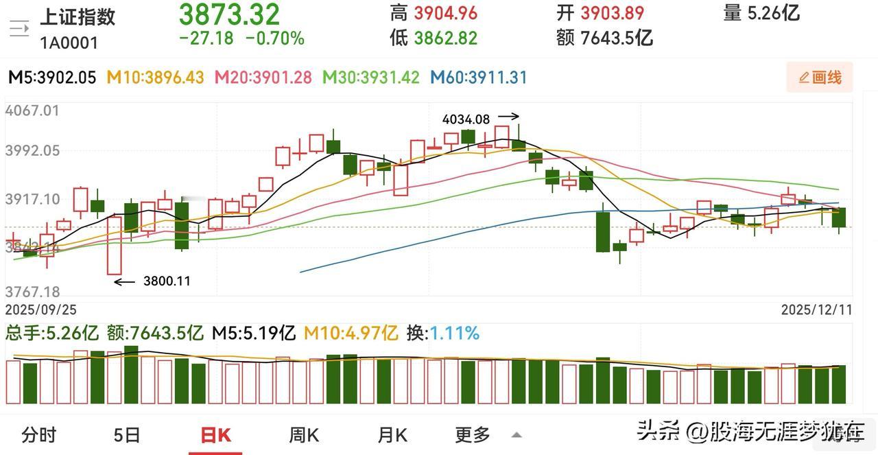 今日A股:失望这方面,A股从来不会让人失望!利好之下,A股继续下跌。 当所有人还在为昨日指数探底回升,带来劫后余生般长舒一口气后,昨晚,美联储降息25个基点的利好预期中到来。于是很多人都在预测今天大A会大涨,结果今天大盘一盆凉水从头浇到尾。 截止收盘,沪指大跌0.7%,报收于3873点。盘中一度大跌1%,来到最低的3862点,创近几天下跌新低。创业板早盘还维持强势,一度上涨1%以上,但到了下午,也完全放弃了抵抗,收盘下跌1.4%。个股跌多涨少,4000多只下跌,只有1000只上涨,亏钱效应明显。 利好之下,A股为何出现高开低走的走势?原因在于: 1.主力预判了散户的预判 早在预期中的美联储降息在主力思维中早已消化,但对于天天盼望上涨的散户,却奉为救命稻草。主力明白这一点,所以早盘主力利用了散户的进场做多热情开始了筹码派送,导致了大盘的高开后持续低走。 2.A股2025年度上涨目标已完成 “每年1000点上涨KPI”已不是秘密,且越来越被证明是个事实。去年2689到3674,今年从3040到4034,都恰到好处的1000点左右。所以,4034已是今年最高点,行情已经提前结束。在2026年牛市再次启动前,A股只剩下了震荡向下。 尽管今年A股已经没有大的行情,但不代表会持续下跌,慢牛的总纲领和“防止股市大起大落”的政策要求下,A股不会持续大涨,也没有了持续性的下跌。那么,上次调整的低点3816很大概率就是调整的极限位。以此为参考,结合明天周五最后一天会议,估计还会调整,那么下周一可能会迎来阶段低点和博反弹的机会。 但无论如何,记住一句话:“2025年的行情已经走完!”要么管住手不操作,要么快进快出。大跌大买,小跌小买;反之就是小涨小卖,大涨大卖。 最后声明:文章内容仅代表个人观点,不构成任何投资建议。股市有风险,投资需谨慎! A股指数 股市分析 今日A股