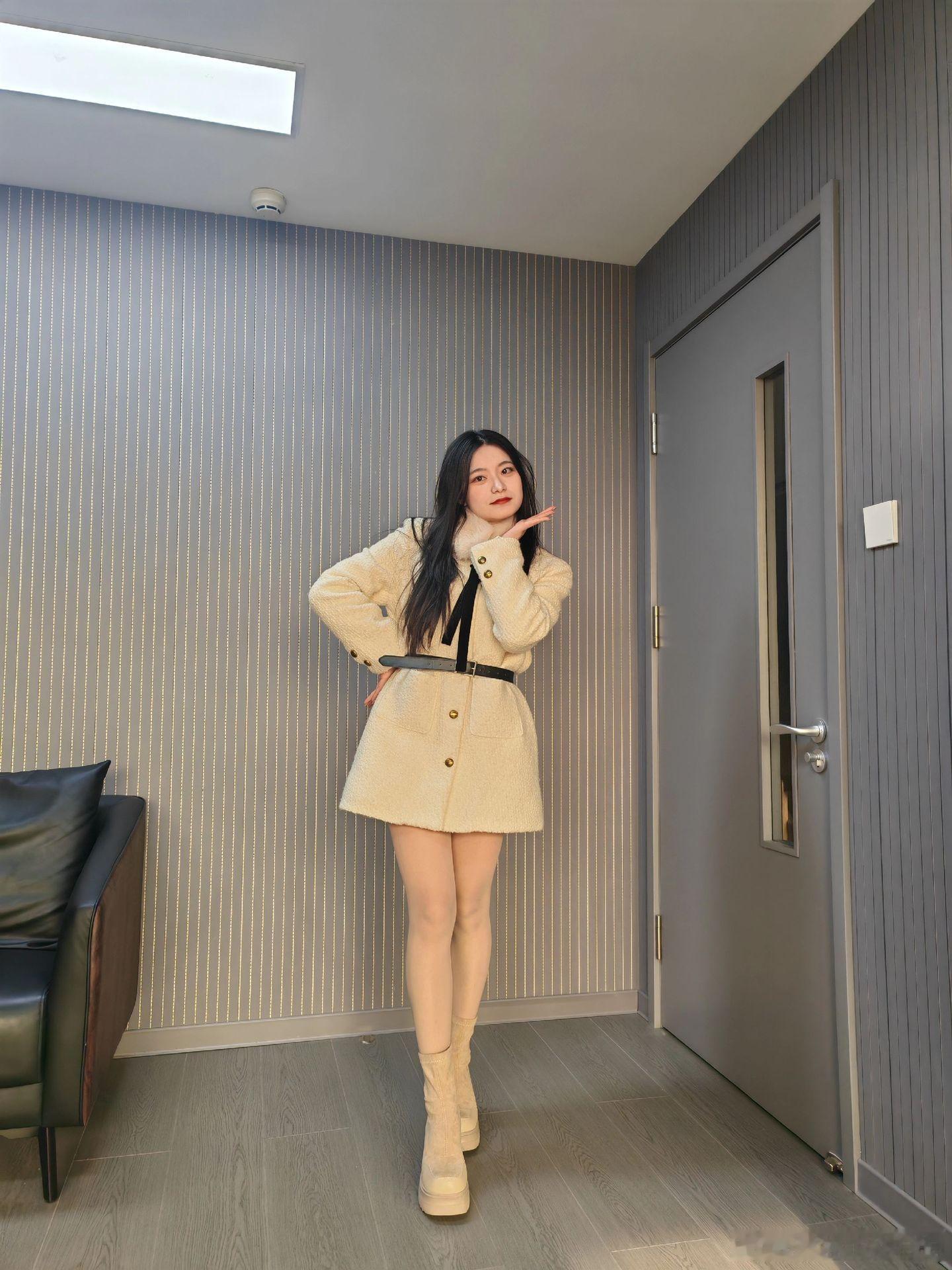 今天穿什么 粉色连衣裙配白色外搭美女绘梦长廊