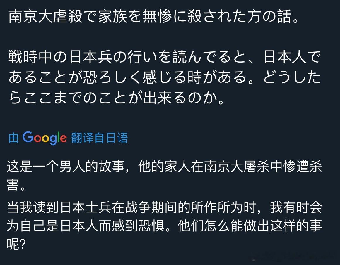 节选了部分日本网民在我介绍南京大屠杀真相的文章下的正向留言,有一个日本人自发把文章从英文翻译成了日语,说希望尽一份力让日本人知道真相。当然,至今仍冥顽不灵、继续否认历史的日本右翼依然不在少数。但无论如何,将中国人民所遭受的苦难与历史的真相传递给世界,依然是有意义的。这些天查阅了大量资料,突然觉得很抑郁很难过。想到张纯如女士为了揭露真相走访了多少证人,忍受了多少精神压力,我便对她肃然起敬。太惨了。太难过了。