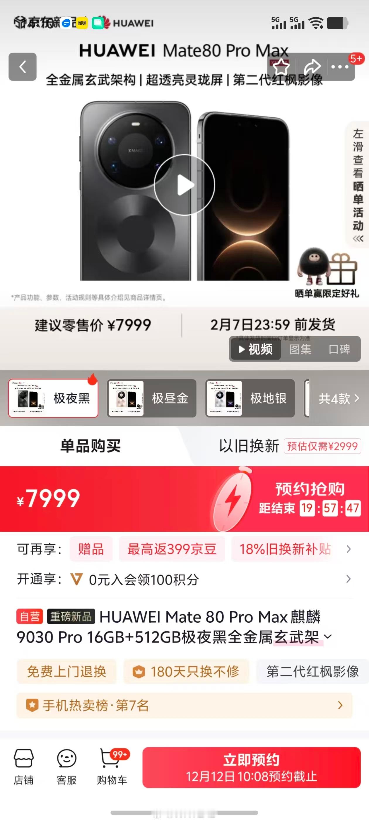 华为重夺中国手机市场份额第一那个华为回来了,连续两周市场份额第一,主要是这代 Mate 80 系列性价比高了很多,起售价干到了 4699,比 Mate 70 降了 800,就是Pro Max 备货量太少,现在还得靠抢。