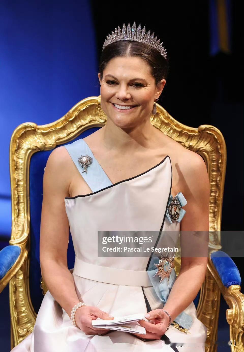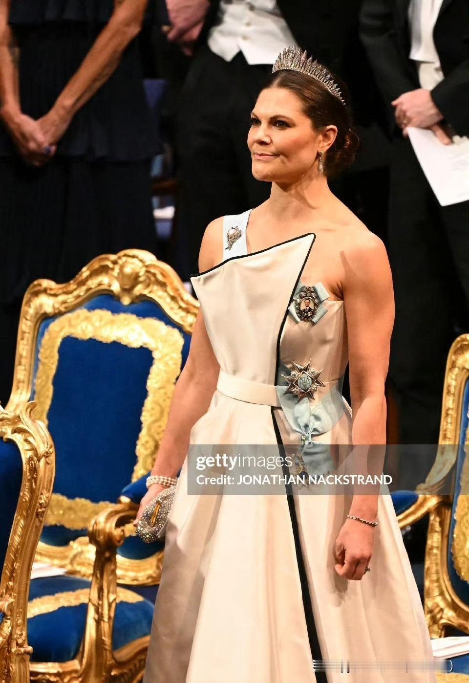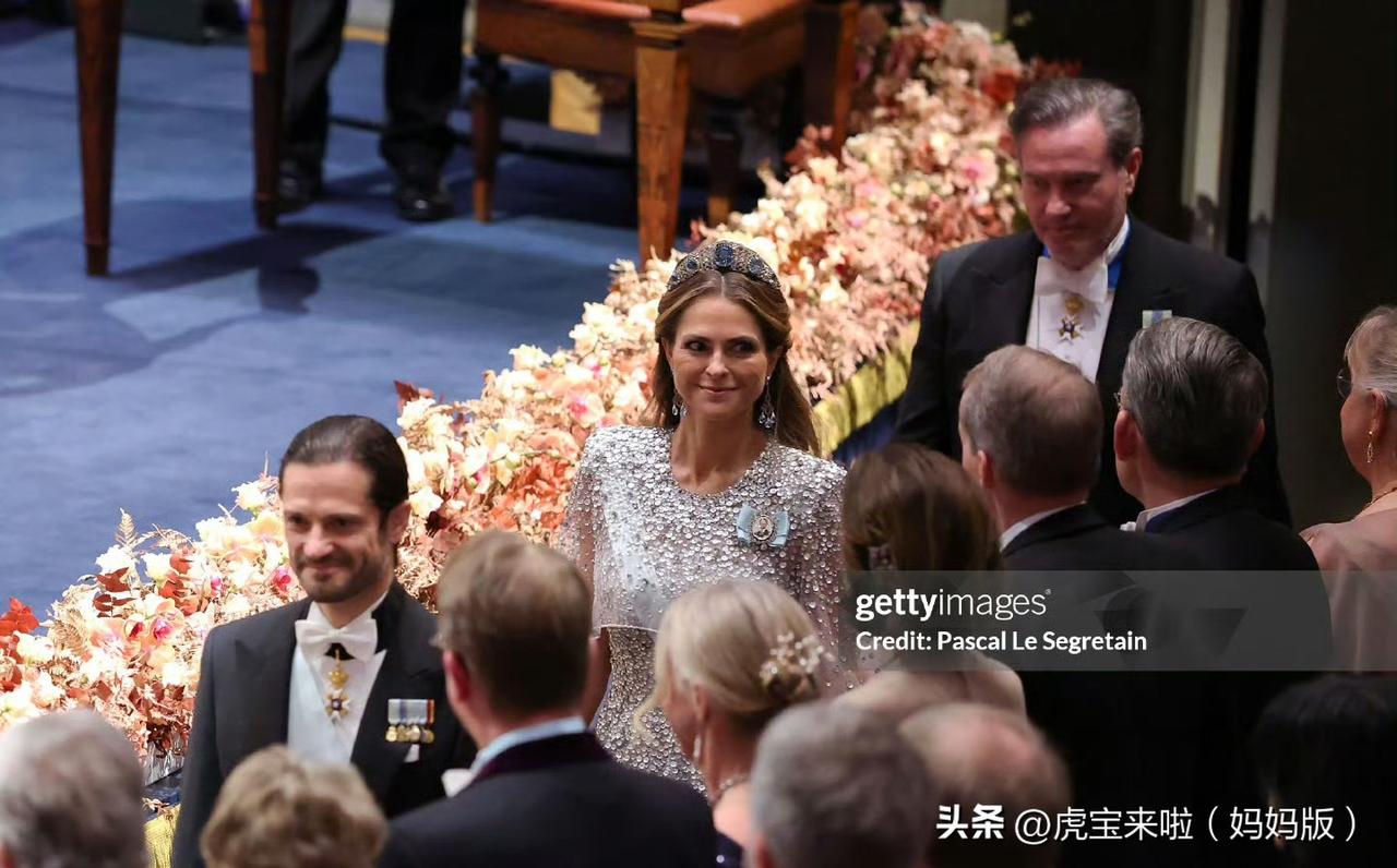 今年的诺奖颁奖典礼环节!大家都穿了旧衣,维多利亚公主的露肩礼服设计很特别,但,公主确实不太适合大面积裸露的衣服!