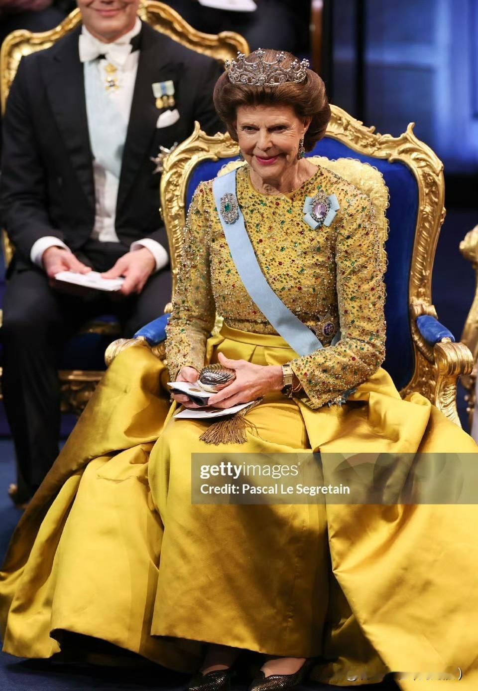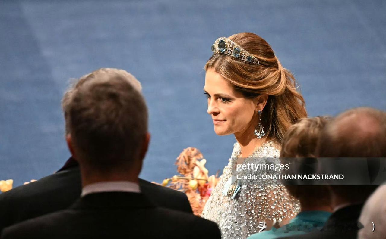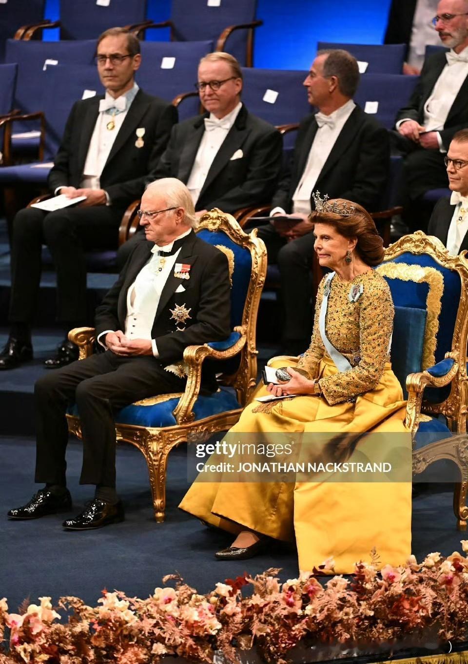 今年的诺奖颁奖典礼环节!大家都穿了旧衣,维多利亚公主的露肩礼服设计很特别,但,公主确实不太适合大面积裸露的衣服!