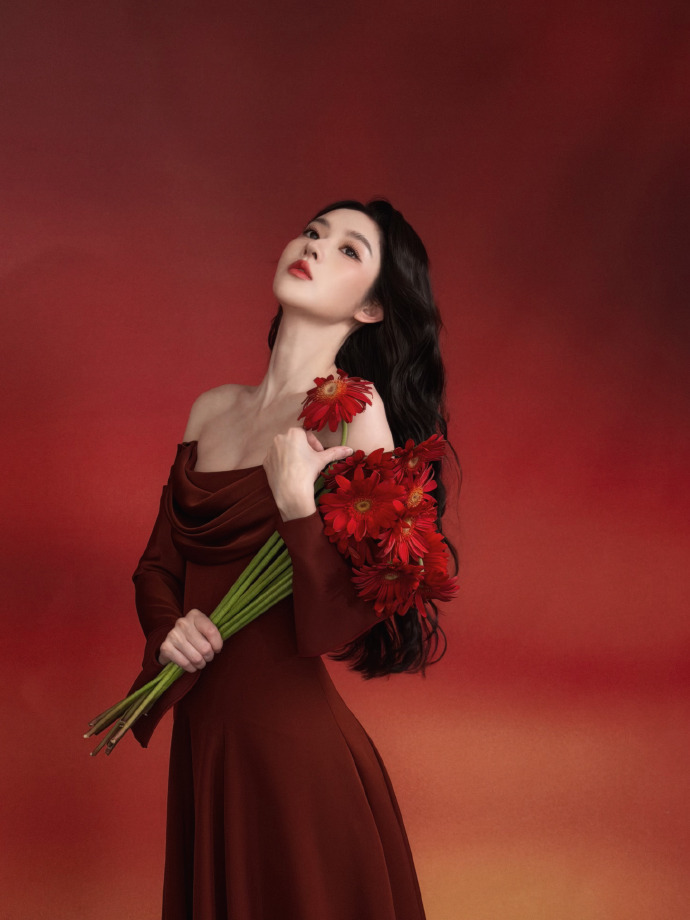 吻花的柔美场景中,王玉雯的抹胸红裙剪裁利落,色彩明艳,展现出时尚与优雅的平衡。王玉雯抹胸红裙王玉雯吻花