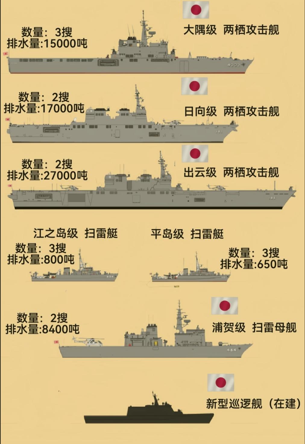 日本海上自卫队的优势还是比较突出的,尤其是反潜和扫雷能力最为突出,防空反导能力紧随其后,这形成了日本海上自卫队的三大支柱优势。 日本海自的核心优势集中在反潜和扫雷两大传统强项,这两项能力被认为全球前几的水平;防空反导能力也紧随其后,在亚洲范围内仅次于中国;近年来通过准航母化转型和电子战能力提升,进一步增强了综合作战效能。 这种"以反潜为核心、扫雷为特色、防空为屏障"的能力架构,既符合日本作为岛国的地理特点,也与其作为美国盟友的战略定位高度契合,形成了JMSDF区别于其他海军的独特优势体系。 反潜能力是日本海上自卫队最核心的优势领域,被广泛认为仅次于美国,位居世界第二,甚至被称为"美国第七舰队反潜分队"。空中有P-1/P-3C巡逻机、水面有驱逐舰+护卫舰、水下有苍龙级潜艇等立体协同体系,有着全球罕见的完整性。 驱逐舰普遍装备先进拖曳声呐,护卫舰群以反潜为主要任务,形成了"以反潜为核心的舰队架构"。 日本的扫雷能力也很强,拥有数十艘专业扫雷舰艇,有着全球最大规模的专业扫雷力量。 由于二战期间日本深受水雷封锁之苦,因此将扫雷能力视为国家安全战略的重要一环,持续投入了大量资源发展。 再就是日本海自的防空反导能力,他们拥有8艘宙斯盾驱逐舰,4艘金刚级、2艘爱宕级、2艘摩耶级,全部配备SPY-1D(V)相控阵雷达和MK-41垂直发射系统。 摩耶级搭载基线9C宙斯盾系统和标准-3 Block 2A导弹,拦截高度达500公里,可拦截中程弹道导弹。单艘宙斯盾舰配备96个垂直发射单元,可发射标准-2/3/6系列防空导弹,形成了多层次防空屏障。 最后我们盘点一下日本海上自卫队的主要作战力量有哪些。 两栖攻击舰和准航母: 大隅级两栖攻击舰数量3搜,排水量:15000吨 日向级两栖攻击舰数量2搜,排水量:17000吨 出云级两栖攻击舰数量2搜,排水量:27000吨 驱逐舰: 高波级驱逐舰数量5搜,排水量:6300吨 朝日级驱逐舰数量2搜,排水量:6850吨 朝雾级驱逐舰数量8艘,排水量:4900吨 村雨级驱逐舰数量9搜,排水量:6200吨 秋月级驱逐舰数量4搜,排水量:6800吨 金刚级驱逐舰数量4搜,排水量:9485吨 爱岩级驱逐舰数量2搜 排水量:10000吨 摩耶级驱逐舰数量2搜 排水量:10500吨 护卫舰: 最上级护卫舰数量12搜,排水量:5500吨 潜艇及扫雷艇: 亲潮级潜艇数量11搜,排水量:3000吨 苍龙级潜艇数量12搜,排水量:4200吨 大鲸级潜艇数量4艘,排水量:4200吨 淡路级扫雷艇数量3搜,排水量:690吨 江之岛级扫雷艇数量3搜,排水量:800吨 平岛级扫雷艇数量3搜数量:排水量:650吨 浦贺级扫雷母舰数量:2搜,排水量:8400吨 新规划舰艇: ASEV驱逐舰 在建 新型巡逻舰 在建 总之,日本海上自卫队是一支装备精良、技术先进、训练有素,且与美军高度一体化的海上力量。 其当前的发展重点在于通过高度自动化、隐身化的新型舰艇更新舰队;通过“软件优先”和网络化转型提升体系作战能力;并通过强化远洋部署和两栖战力,拓展其行动范围和任务类型。 日本海上自卫队正从一支专注于区域防空和反潜的“防御型”力量,加速转型为具备远程打击、跨域两栖作战和分布式体系作战能力的“多面手”。亚洲国家和人民不可不防啊!