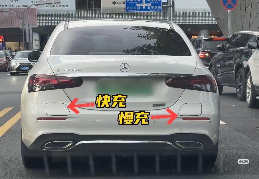 居然还有在屁股上充电的,长见识了,奔驰E350真的离个大谱,研究了下充电口还有2