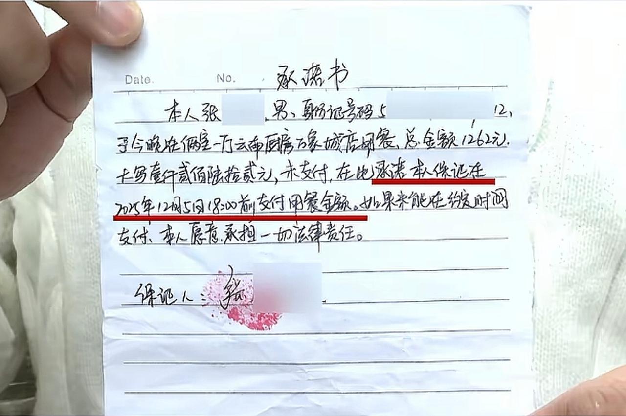 坚决不当冤大头!10人聚餐,饭后9人悄悄离开,留下最后一个只能忍气吞声。带头聚餐的不结账,其他人自然不吭声离开,老板只能抓最后离开的人,但是即便答应付款,写下承诺书,却心里不公平,只是参加聚会却变成牵头结账的,所以第二天立马反悔,打电话联系牵头的却一直不通,这明白着就是坑人。