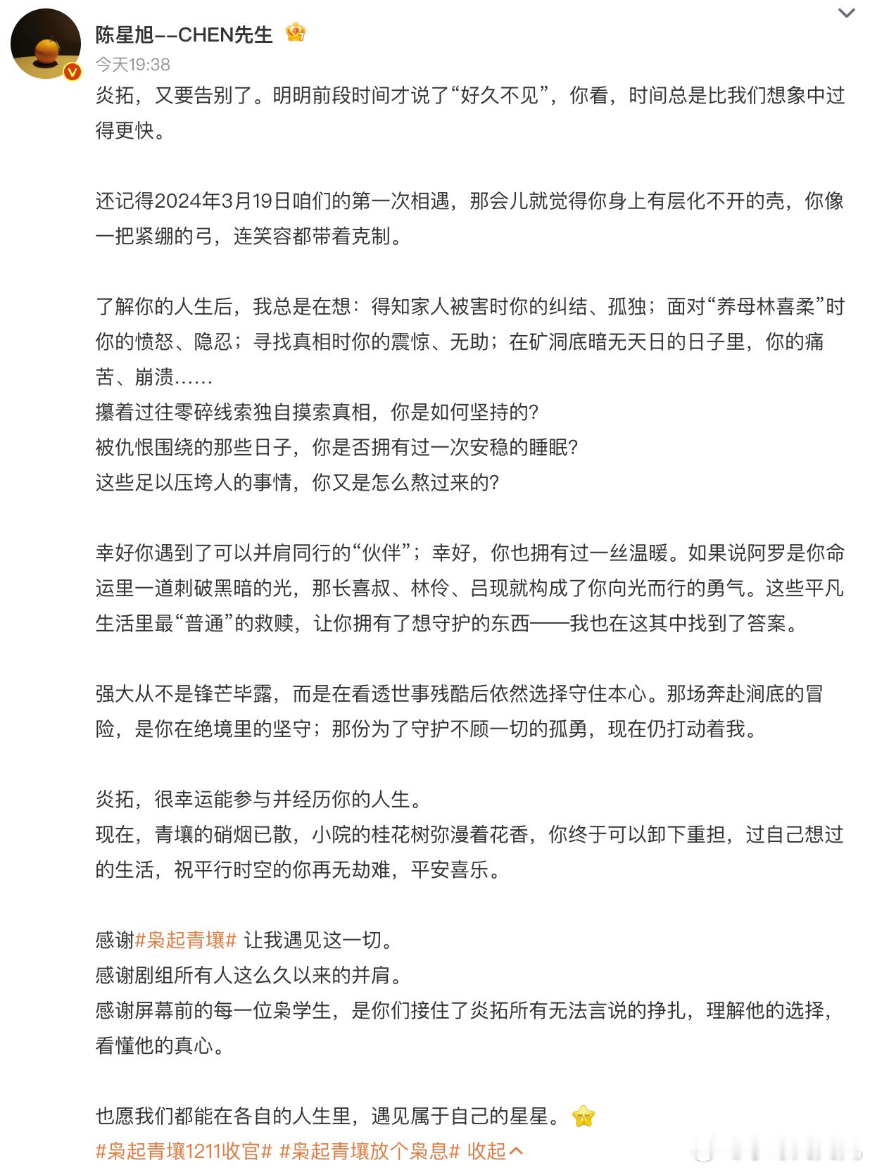 今天枭起青壤收官,迪丽热巴和陈星旭都发长文告别了!既然收官了,那我准备看起来了迪