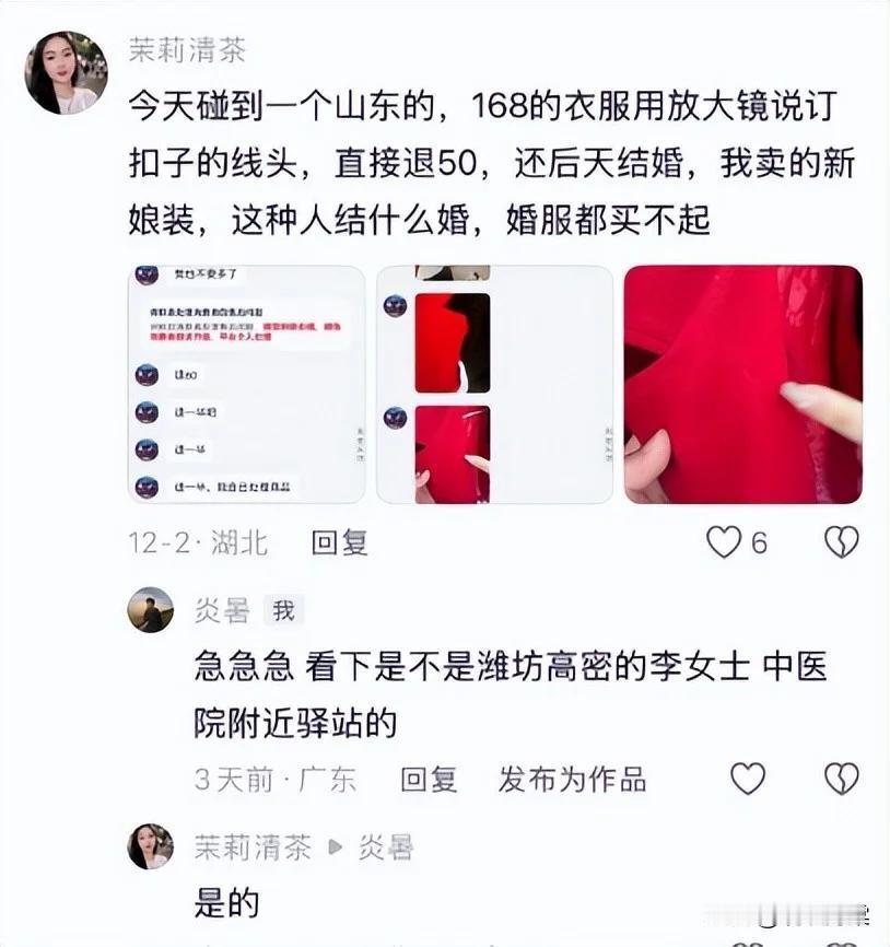 孔孟之乡,怎么会有这种奇葩? 山东潍坊高密的李若楠,在网上订了5瓶果酒,花了43.9元,仪式结束后,要求全额退款,运费商家承担。商家将此事发到网上,李若楠雇多人下单,发布差评。更奇的是,她把订婚服都退了。 这婚是结不起了。 果酒不仅全部开封,原装礼盒,保护泡沫全部丢失,这样还好意思退货?这也就是在网上购买,如果在实体店,谁能给你退?喜服喜酒都退了,这可不是好兆头。 这种人真给诚实守信善良的山东人抹黑。