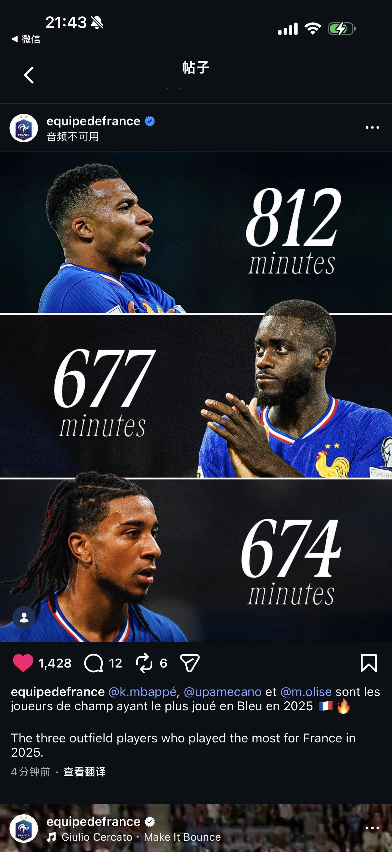 姆巴佩 IG STORY更新:恭喜你!@ desire.doue完全实至名归!