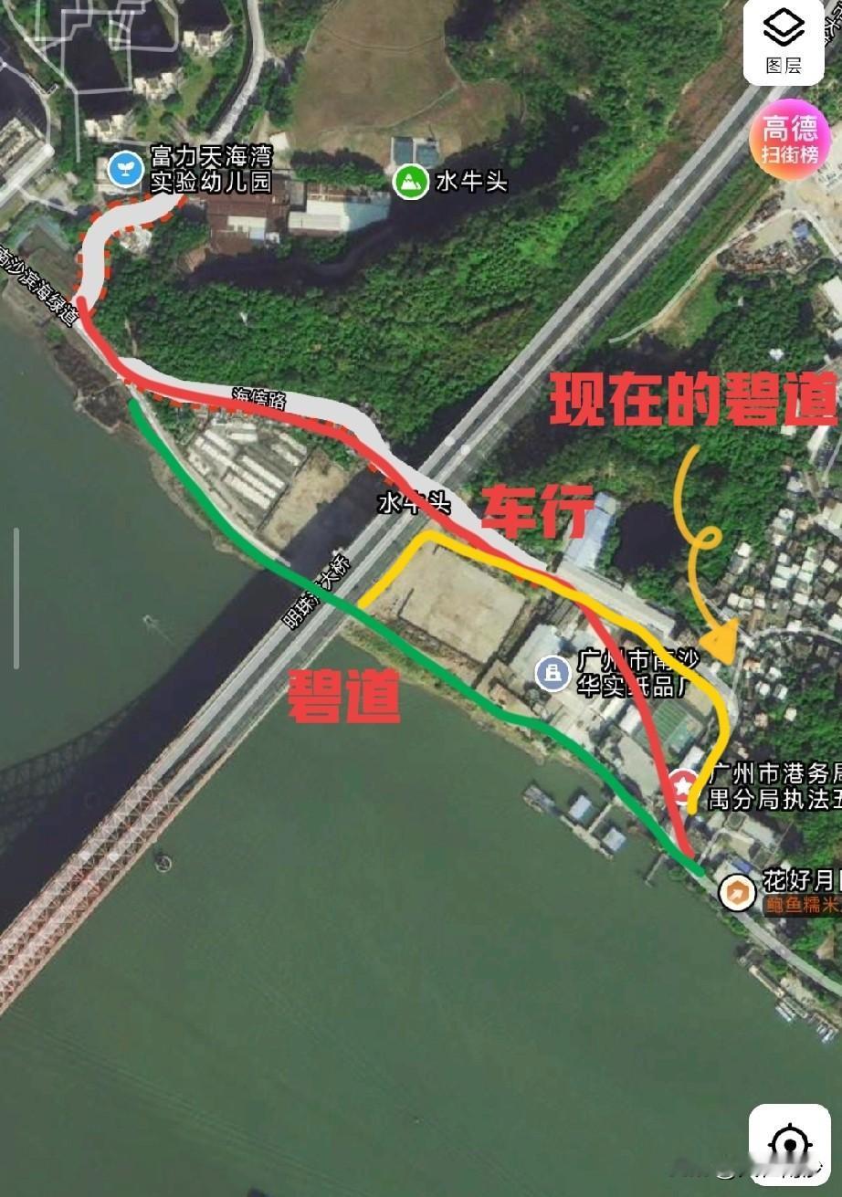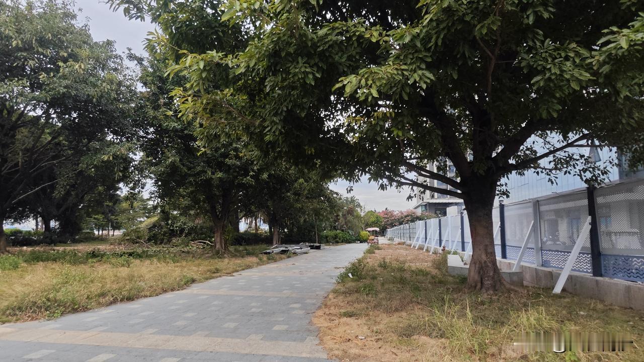 南沙情侣路又一个难点看来是要搞定了。富力天海湾前面这块绿地开始平整了,草地已经铲了,一些高的树估计是等着下一步进行迁移。 不过这个方案应该是最节省成本的,毕竟要走河边的话更加麻烦了。 就是不知道明珠湾桥底那段会怎么来通了,按照目前桥底公园的建设来看,应该是走原来村里的那条路。不过目前纸厂和某局都没有动静,现在的碧道方案是在纸厂旁边过去村里,然后再从水牛头渡口那边拐出来。