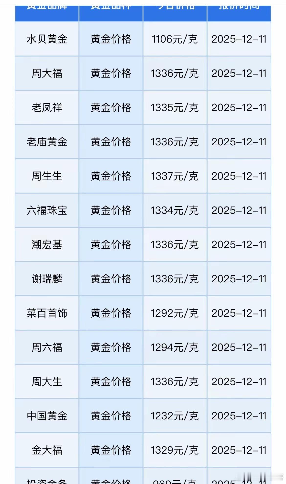 金饰克价涨到1337元黄金首饰价格又上涨了!周大福黄金价格1336元克,老凤祥黄金价格1335元/克,老庙黄金黄金价格1336元/克,周生生黄金价格1337元/克,六福珠宝黄金价格1334元/克。同比与昨天黄金首饰价格普遍上涨了,其中周大福、六福珠宝各上涨8元,周生生上涨9元,老凤祥上涨10元,老庙黄金上涨了11元。另外,今天黄金首饰价格每克在1106元到1337元区间(工费另计)。所有信息都只是提供参考价值!购买黄金有风险,请大家理性购买!