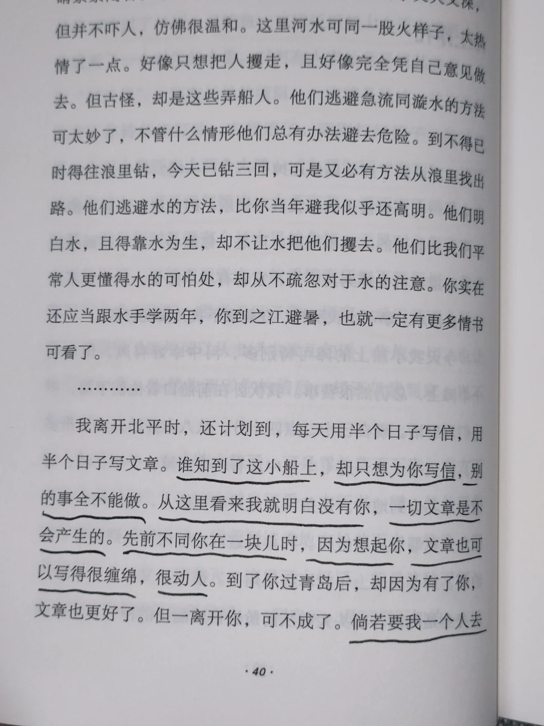 记忆里仍旧是他水上的文字,那样的柔情,淡雅的浪漫。私以为沈爱水,因为水一大特点就是具有柔性,他写的水上的人与事,便也都有了水一般的柔情。