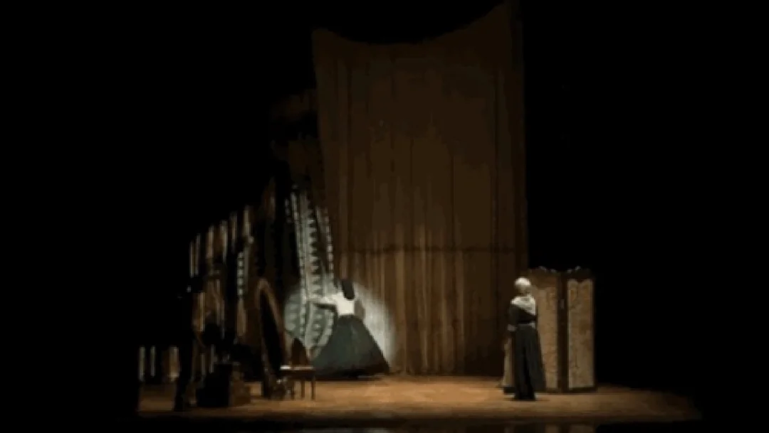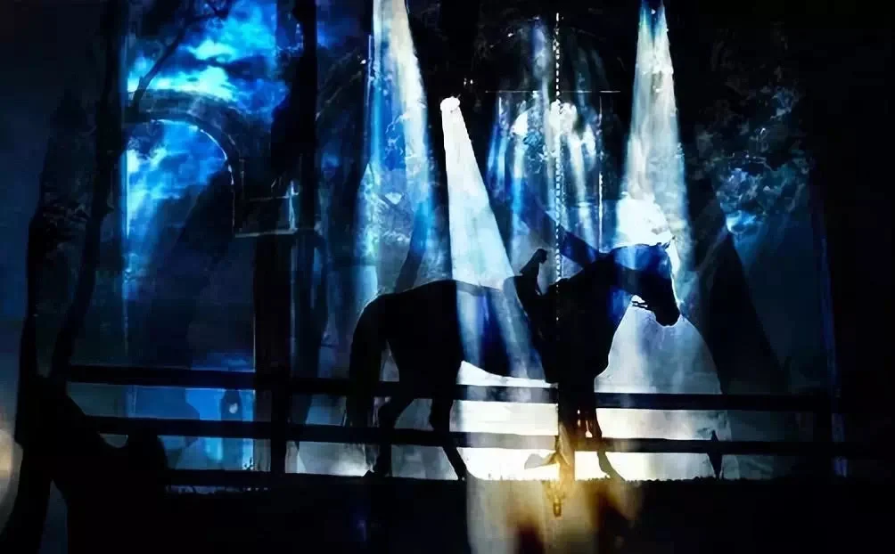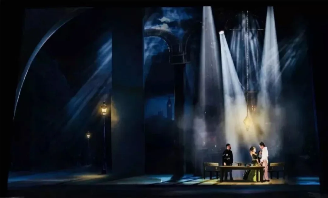 🔅因此舞美设计采用巨大窗帘帷幔对撞钢铁横梁,观众随时都能感受到柔与刚、古典与现代、贵族田园与工业革命之间的对比,蕴含的强烈戏剧冲突。