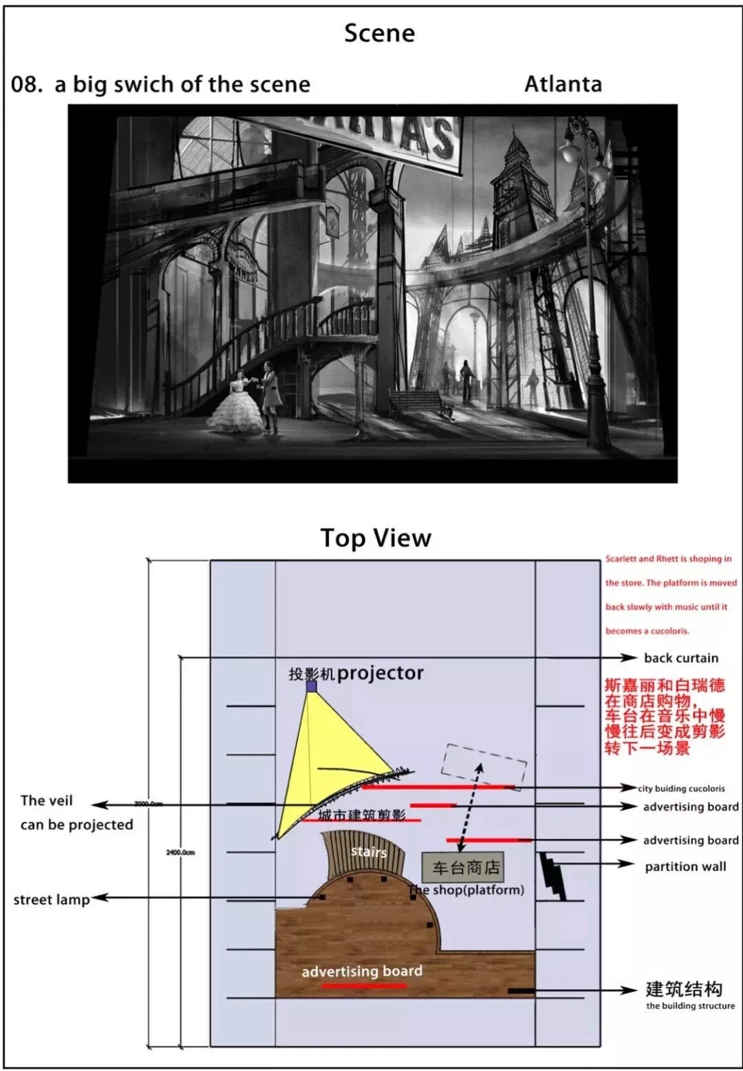 🔅英文版音乐剧《乱世佳人》的舞台设计,既完美复刻了小说十大极致场景,鲜活震撼让人身临其境,又不拘泥于电影中的现实环境,将典型情景下的典型物件进行解构,把古典的气质用现代审美去表达,象征性写意性的艺术呈现,使之更为梦幻意象,充满戏剧张力和想象空间 。