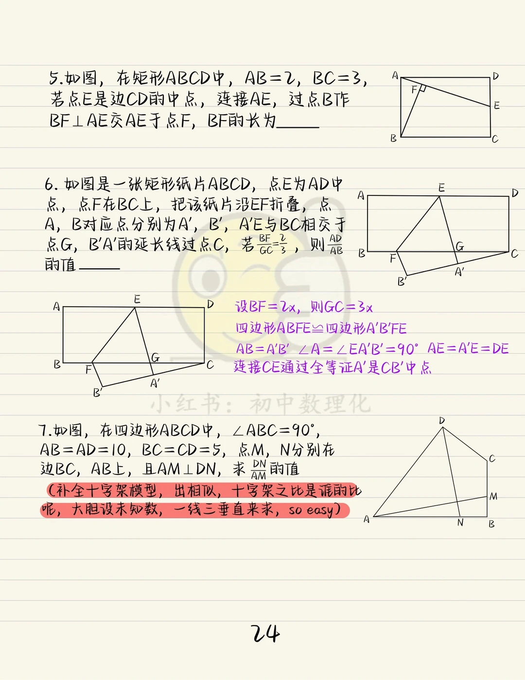 这也是中考常考的一类模型,常和折叠问题相结合,掌握规律,解题更迅速!