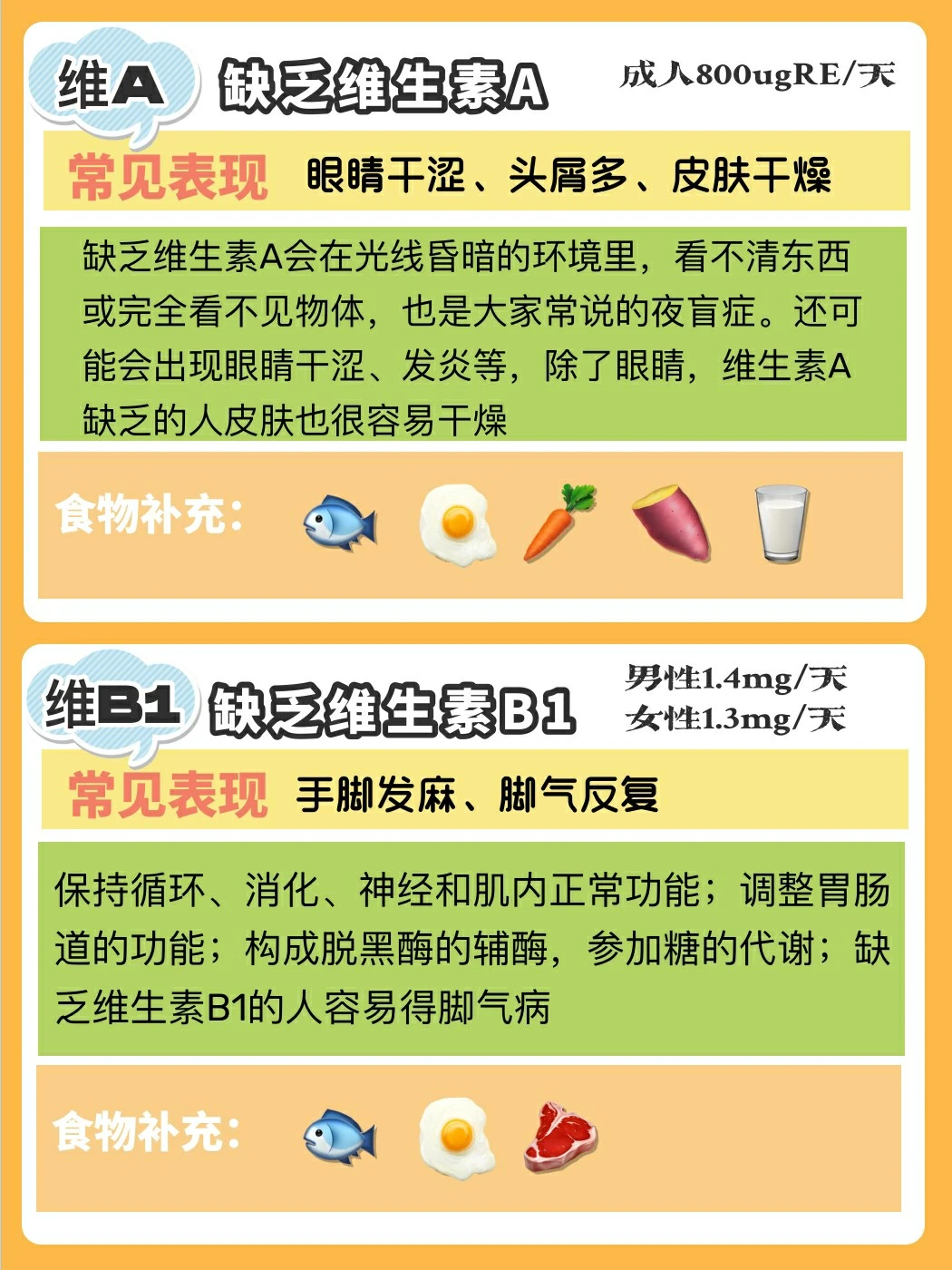 怎样知道自己缺乏哪种维生素? 图片里有详细介绍一目了然,建议理性参考。
