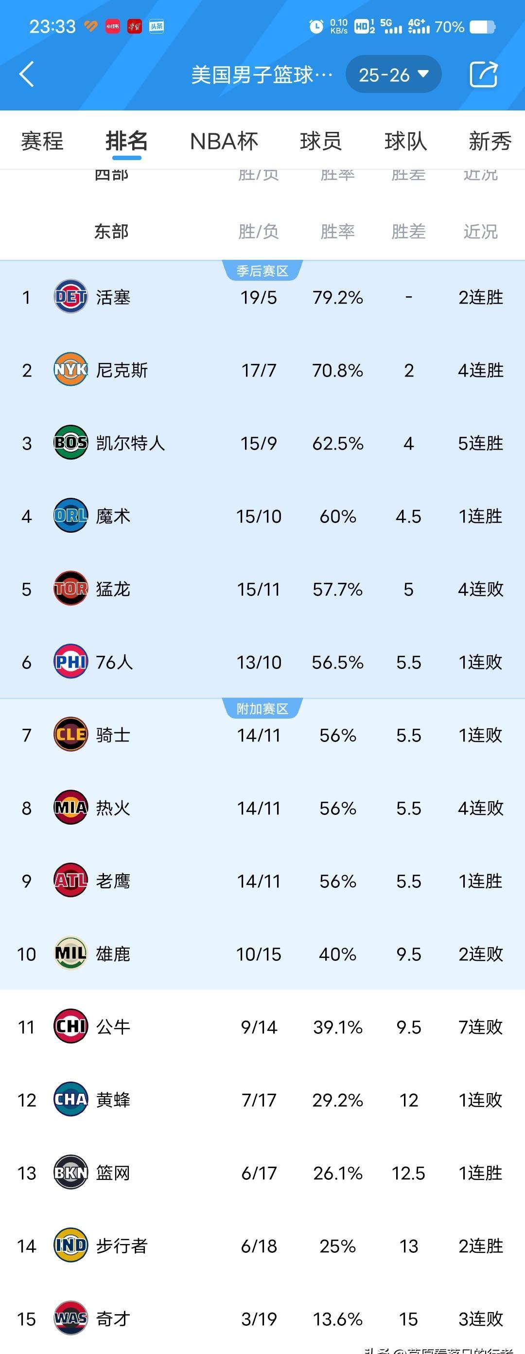卫冕冠军雄鹿跌到东部第10!上赛季东冠步行者倒数第二! 活塞19胜5负杀到榜首——东部这摊浑水,谁在掀浪? 坎宁安最近5场砍28.4分7.2助,命中率49.3%,硬生生把活塞从去年第6抬到第一。 布伦森12月场均联盟前五,带着尼克斯4连胜,17胜7紧随其后。 双探花合计52.6分,5连胜拉凯尔特人回第三——老牌劲旅还没认输。 雄鹿缺字母哥胜率40%排第10,骑士滑到第7,步行者6胜18负垫底——豪强集体失速。 不是传统豪强垄断东部,而是新星黑马改写格局。 今年的东部,每一场都藏着你想不到的反转。