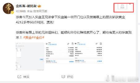 黄金现价参考28进空,止损33 目标看4205,博文最后一单黄金金价