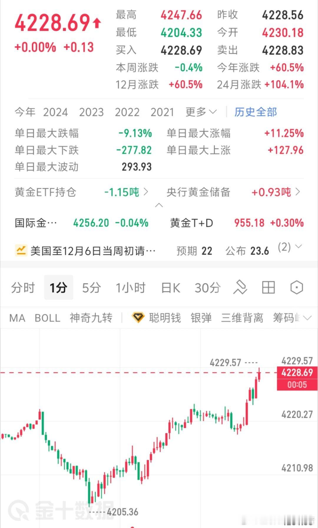 黄金现价参考28进空,止损33 目标看4205,博文最后一单黄金金价