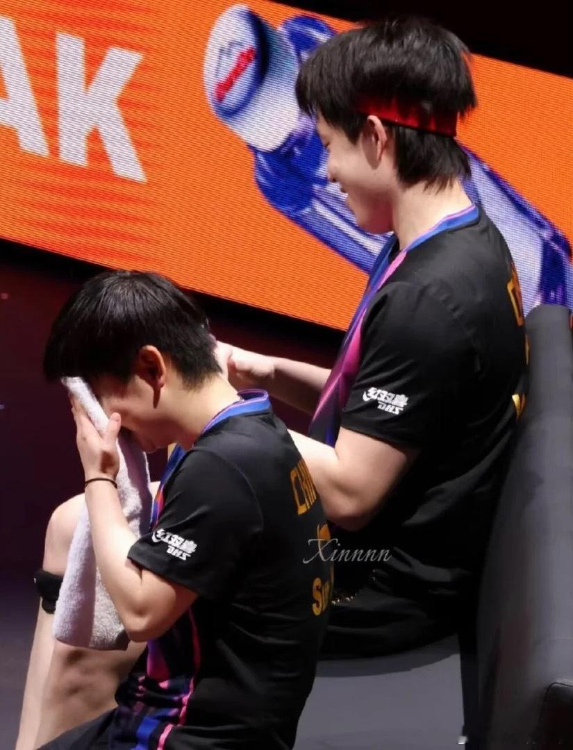 今天的比赛最难受的就是莎莎和林诗栋。林诗栋上午被大哥梁靖崑打。一整天看下来,