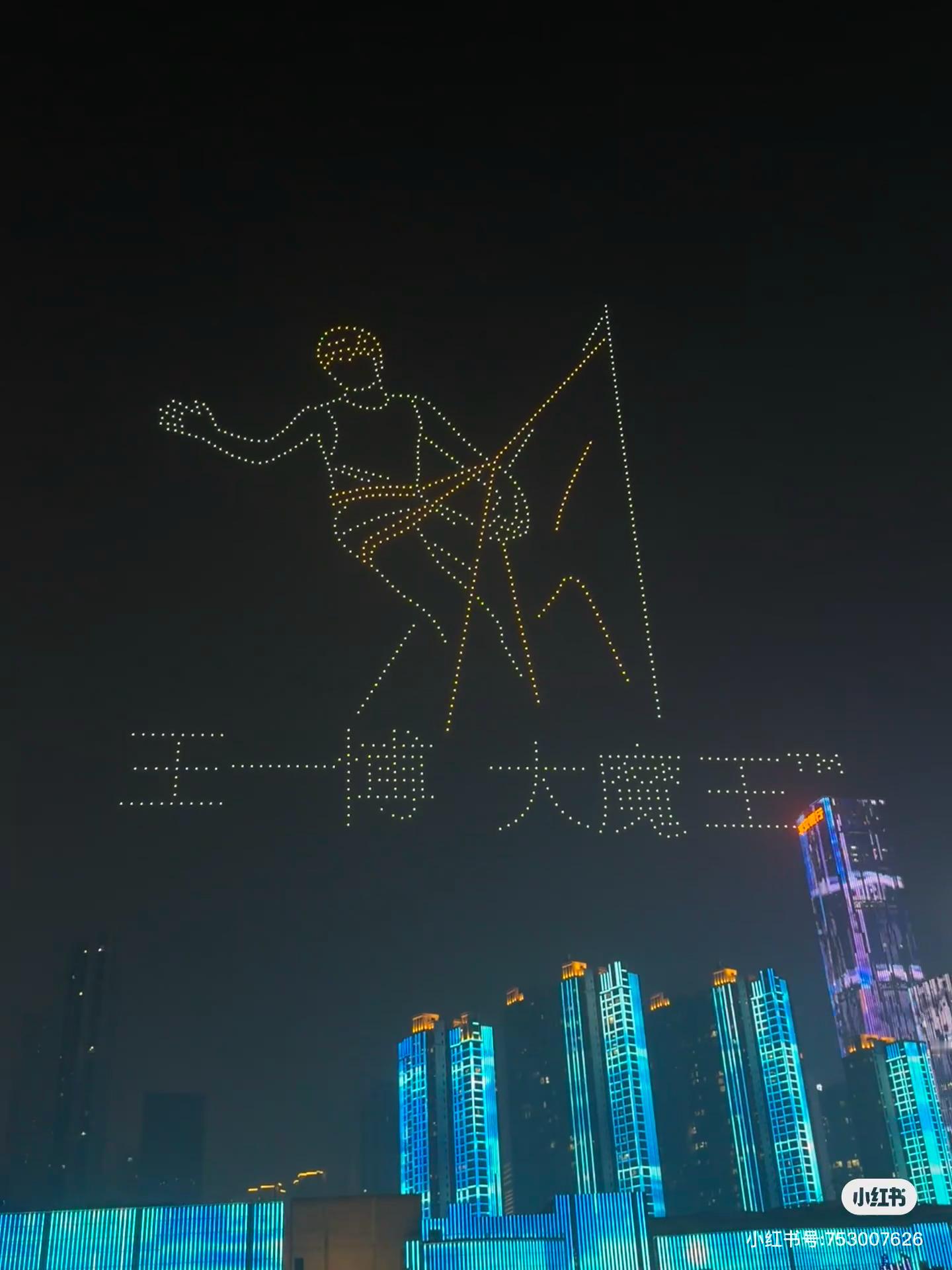 王一博大魔王品牌全球代言人很很很霸气的无人机应援了