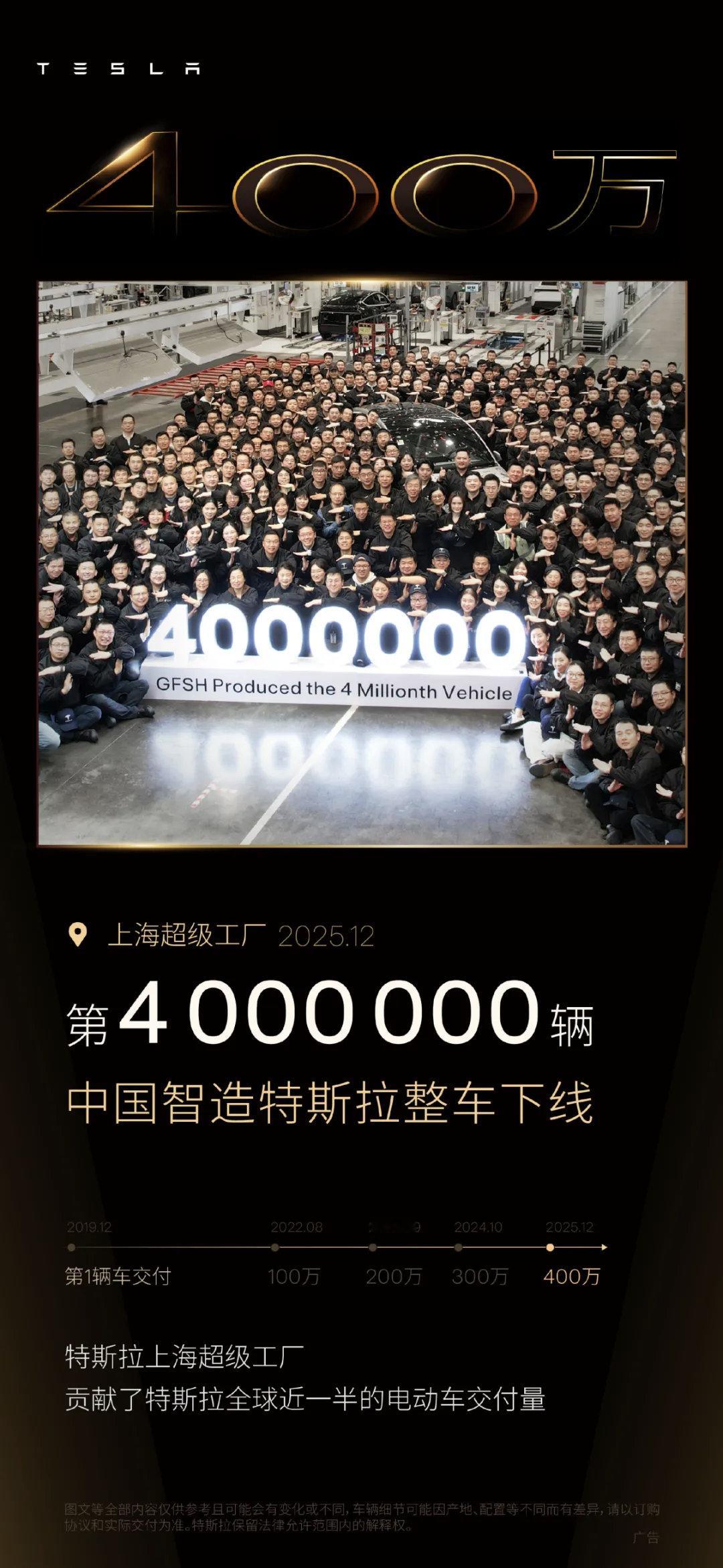 特斯拉400万辆下线,不得不说确实是非常牛叉的成绩特斯拉