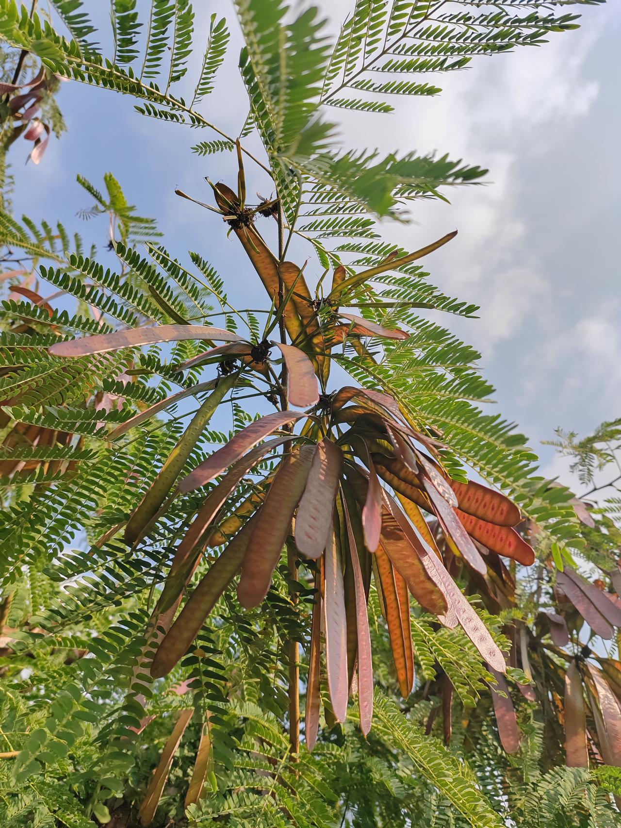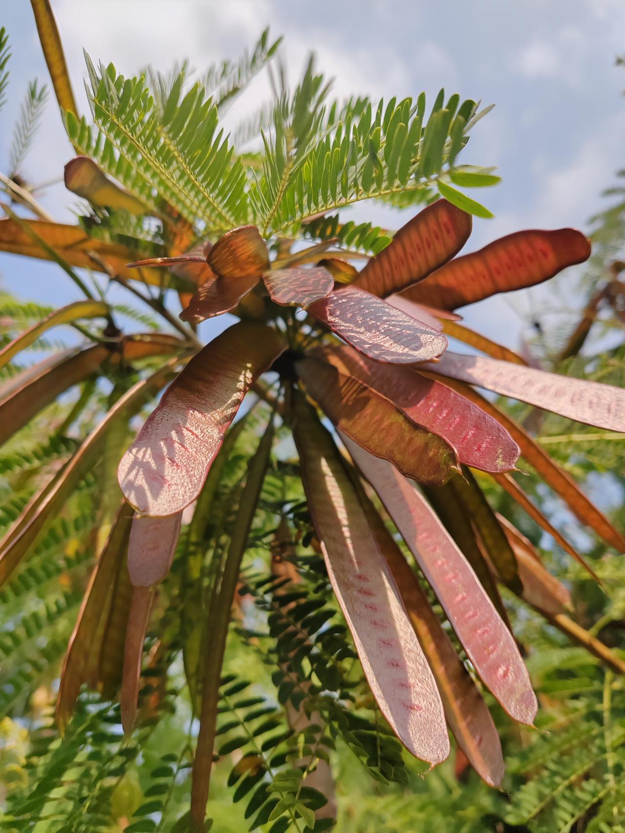 特写对准一丛新绿,叶脉在阳光下纤毫毕现。数枚红玛瑙般的皂荚从叶隙间垂落,色泽浓郁如凝脂。光影在光滑的弧面上流动,与叶片的哑光质感交织。这红与绿的对话,是草木生命最热烈的诗行。