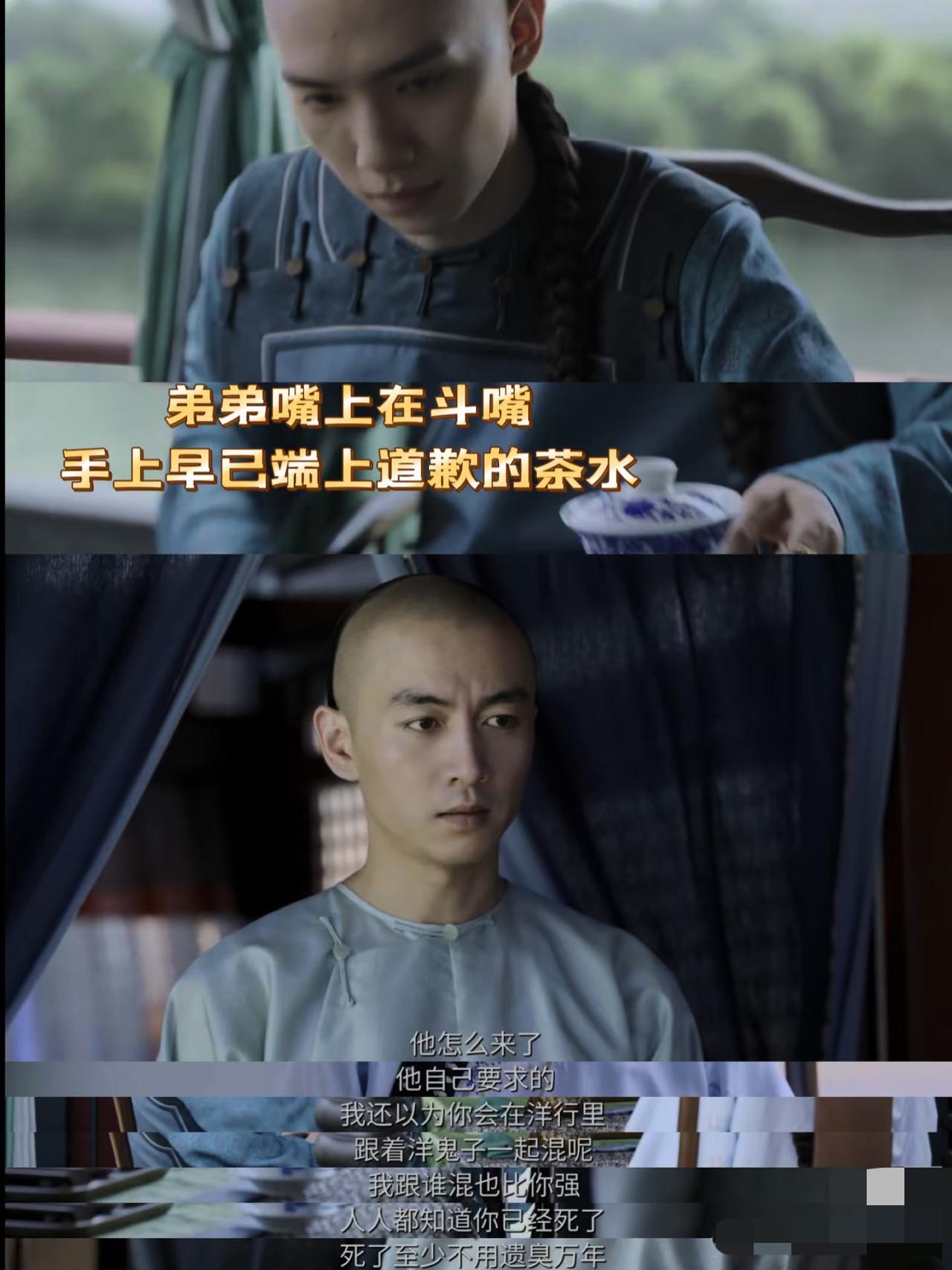 《大生意人》:你看懂了吗?兄弟俩已经和解了。 终于那个不谙世事、一心想要闯荡世界的小少爷还所有人一个圆满的李钦,他完成了自己的成长线,很丰满又好看! 结局是:李钦和父亲以及同父异母哥哥古平原的亲情线更是好嗑,看得让人人落泪,上一辈的恩怨理不清楚,可这一辈的兄弟情谊两人都没辜负。他接过他递过来的茶,就是一种和解。 特别是李钦下船冒着被总督大人暗杀的风险也要去和古平原“打架”那场戏,李钦只有在古平原面前才会哭的像个孩子。