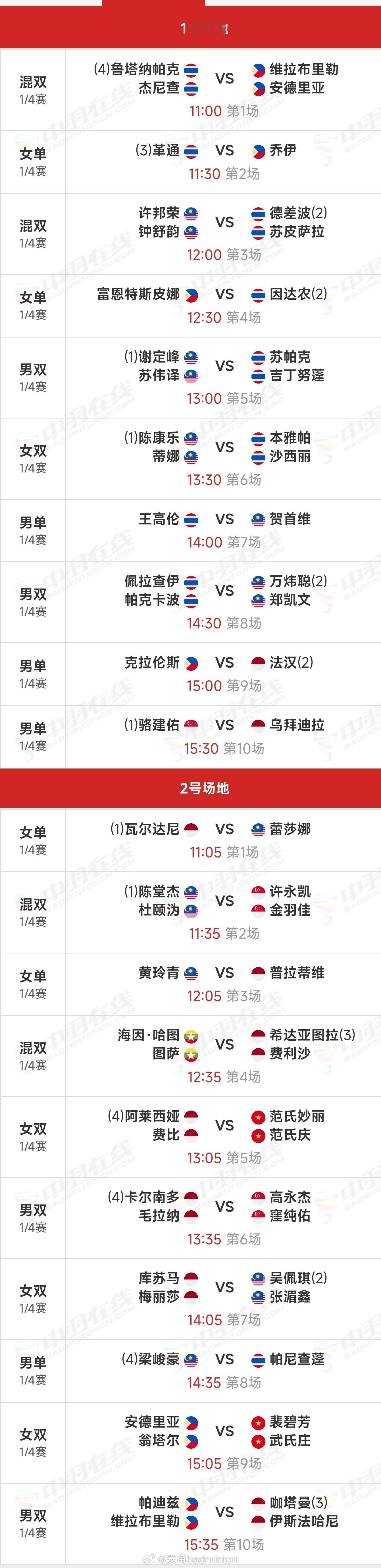 2025年东南亚运动会羽毛球各单项【决赛】赛程(图1)|【半决赛】赛果(图2)❶