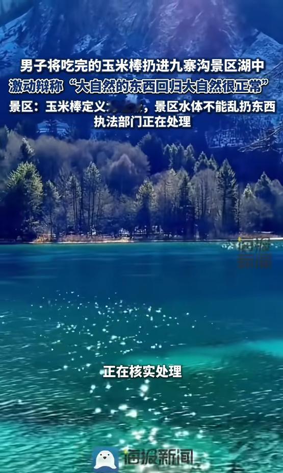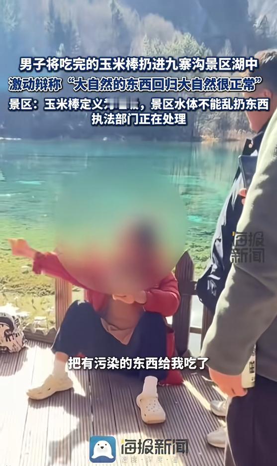 “丢人现眼!”最近,四川阿坝,一男子去九寨沟游玩,没想到,他却把吃剩下的玉米直接扔到了水里,有游客看到后上前指责,认为他这样做污染了环境,可男子却认为自己没错,还情绪激动的喊道:大自然的东西回大自然很正常! 麻烦各位读者点一下右上角的“关注”,留下您的精彩评论与大家一同探讨,感谢您的强烈支持! 最近,一段发生在九寨沟景区的视频引起了广泛关注。镜头里的主角是一位来自四川阿坝的男子,他在游览景区时,吃完手中的玉米后,随手将啃剩的玉米棒丢进了湖水中。 这一幕被周围的游客注意到,有人立刻上前劝阻,提醒他这样做会对环境造成影响。也有游客用手机记录下了全过程。 面对指责,这名男子并没有表现出一丝愧疚,反而情绪激动地为自己辩解。他的逻辑很简单:“玉米是天然的,本来就来自土地,吃完还给大自然有什么问题?” 他说得慷慨激昂,语气里满是不解和委屈,甚至为了证明自己的清白,竟然情绪失控地扇了自己一巴掌,场面一度变得极为尴尬。这种“理直气壮”的态度,让在场许多游客和工作人员都面面相觑。 实际上,九寨沟的环境保护规定写得很清楚,景区内严禁任何形式的乱丢垃圾,无论是塑料包装还是所谓的“天然物”。 工作人员在得知情况后,第一时间赶到现场,将漂浮在水面的玉米棒打捞了上来,并对该男子进行了劝导。然而,他依旧坚持自己的说法,认为自己的行为并无不妥。 很多人看到这里或许会觉得不可思议:一个成年人,怎么会对垃圾和自然的关系有如此大的误解? 在部分人的观念里,天然的、可分解的东西就等同于无害,但他们忽略了生态环境的特殊性。九寨沟的水体生态极其脆弱,哪怕是一根玉米棒,长时间无法被分解,也会改变水中的营养结构,引发富营养化,进而威胁到整个水下生态系统的平衡。 更何况,景区不是自家的田地。很多人习惯把家里的做法带到公共场合,却忘了公共环境讲究的是规则、共识和责任感。 如果每个游客都抱着“我觉得没事”的心态随手丢弃垃圾,哪怕只是瓜子皮、香蕉皮,九寨沟还能保持今天的模样吗?一处美景的纯净,靠的不是管理者一纸禁令,更需要每一个人的自觉守护。 这起事件引发的讨论,已经远远超出了当事人的对错。它让我们重新审视,环境保护究竟只是景区管理者的事,还是每个社会成员的责任? 当孩子们在课本上学到“保护环境人人有责”,如果身边的大人却在公共场合肆意妄为,这种错位的榜样会带来怎样的后果? 面对公众的劝诫和工作人员的耐心解释,男子依旧选择否认和狡辩。这种抗拒承认错误的态度,其实是社会文明建设中的另一道难题。 我们该如何培养公民的规则意识和责任感,让“自觉”成为习惯,而不是外部压力下的暂时顺从? 九寨沟的美,是无数代人呵护和传承下来的结果。它见证了自然的奇迹,也考验着人类的良知。每一位游客在感受美景的同时,其实也是在接受一次环保素养的考验。 保护生态环境,说到底不是一句口号,而是体现在每一件小事之中。哪怕只是扔掉一根玉米棒,也可能产生超乎想象的影响。 这件事,你怎么看? 信源:《“大自然的东西就要回归大自然”,男子将吃完的玉米扔进九寨沟湖中,被指责后情绪激动反驳并扇自己巴掌》——潇湘晨报·晨视频