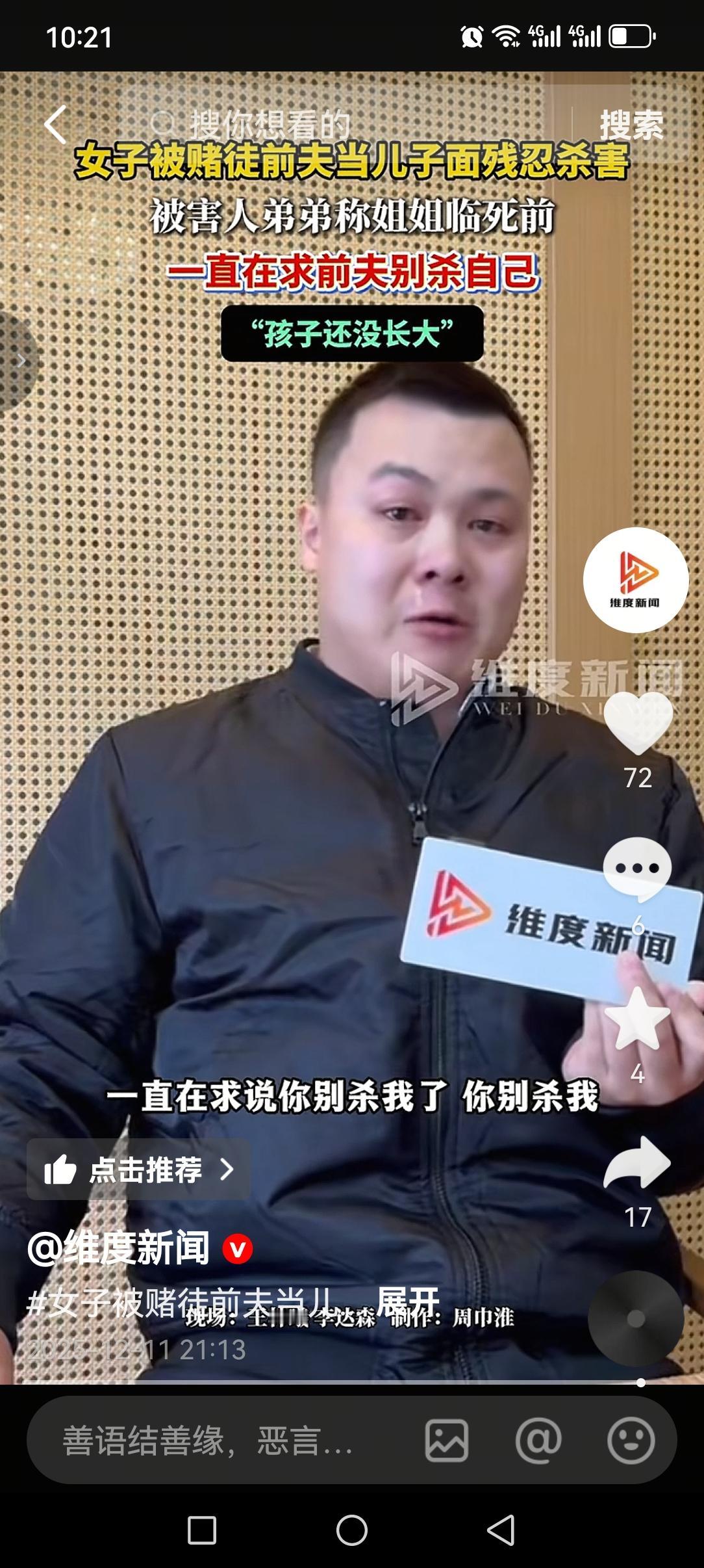 这位是山东临沂被前夫S害女子的亲弟弟。 他姐姐的案件现在也要迎来审判了。 他哭着说出了,目睹了惨案发生的整个过程,姐姐年仅十岁孩子的现状。孩子现在跟他们生活在一起。已经患上了抑郁症,还有心理性功能障碍,正常走路有可能就会摔倒。 这个孩子现在唯一的诉求,就是判他父亲S刑。 他这个姐姐S的太冤了,和前夫离婚三年了,一直独自抚养孩子。 前夫嗜赌成性,把家里的房子都输了。女子看在孩子的份上也给了他数次机会,但依然他死性不改。最后女子只能无奈离婚,还替他承担了部分赌债。 离婚后,女子为了还债,抚养孩子,一个人打了三份工。 好不容易女子债还完了,准备开启自己的新生活。因为有朋友给女子介绍一个男朋友,那个男子也不嫌弃她带着儿子,两个人相处的非常和谐,女子也准备步入下一段婚姻了。 没想到她这个前夫嫉妒成性,知道后借故来探望儿子。当着孩子的面,对女子痛下S手,完全不顾虑儿子的感受! 相信法律能还女子公道,让男人付出代价!
