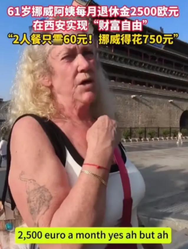 这下真实现了欧洲挣钱中国花!陕西西安,一位61岁的挪威阿姨来旅游,结果被这里的物价香到了,因为自己一个月2500欧的退休金在挪威几乎寸步难行,可来到这里却突然实现了财富自由。   说白了,2500欧元的欧洲退休金换个地方花,就能从“紧巴巴度日”直接逆袭成“财富自由”,欧洲挣钱中国消费这事儿,压根不是夸张,是实打实的生活性价比碾压。   61岁挪威阿姨的西安之旅之所以刷屏,本质上就是戳破了“高收入就有高品质生活”的误区——收入多少是数字,能兑换多少真实的生活体验,才是关键。   先搞清楚阿姨在挪威的日子有多难,2500欧元折合成人民币差不多2万元,单看数字不算少,但放在挪威的物价体系里,瞬间就“缩水”大半。   就说最基础的住房,在挪威首都奥斯陆,想租个50平米的老破小单间,每月房租就得1500欧元,光这一项就占了退休金的六成。   更别说过冬的取暖费,一个冬天下来光取暖就要花掉近千欧元,相当于小半个月的退休金。   日常吃喝更是“花钱如流水”,超市里一根黄瓜要1.5欧元,折合人民币12块,一杯普通咖啡加份沙拉的午餐就得20欧元,约160块钱,要是想下馆子吃顿带肉的正餐,人均至少200块,这在挪威对阿姨来说都是过节才敢想的奢侈。   可一到西安,画风直接反转,阿姨在大雁塔附近租了套采光极好的两室一厅,步行十分钟就能到景区,月租才3200块,连挪威单间房租的零头都不到,还包了物业费和网费。   她第一次逛西安菜市场时都懵了,10块钱能买一斤新鲜草莓,这在挪威同样的钱只能买200克。   日常吃饭更是轻松,6块钱的肉夹馍配碗热豆浆就能吃饱,15块的油泼面香得入味,最爱的羊肉泡馍也才28块一碗,还有本地大爷主动教她掰馍的诀窍。   算下来,她在西安一天的伙食费50块就能吃遍花样,一个月下来餐饮开支也就1500块左右。   就拿大家觉得消费高的一线城市来说,根据2024年城市独居青年生活报告,一线城市独居青年月均生活成本约8200元,2万元的预算扣除房租、饮食、通勤等刚性支出后,还能剩下大半用来休闲娱乐。   就算是核心区租个带独立卫浴的单间,租金也就3000-5000元,剩下的钱足够每周去两次餐厅、报个兴趣班。   要是选新一线城市,生活舒适度更上一层,杭州、成都这类城市的近郊单间租金1500-2500元,2万元月薪能轻松租下带智能家电的品质房源,日常通勤靠地铁,月卡也就百来块,周末还能周边游,高铁几十块就能直达周边城市。   这背后其实是中外生活成本的巨大差异,食品方面更明显,欧盟统计局数据显示欧洲食品通胀率还徘徊在5%以上,中国CPI稳在2%以内,超市里一斤猪肉20元,在欧洲同等重量要30欧元。   更关键的是中国的生活便利度,阿姨学会微信支付后,随时随地能点外卖、打车,4000块买的国产新手机,功能齐全还比挪威便宜一半,这些细节都让2万元的购买力进一步放大。   阿姨的经历不是个例,德意志银行的《全球物价地图》早就显示,中国日常生活成本比北欧低200%到300%。   对拿着固定养老金的欧洲退休族来说,中国城市不仅物价友好,还有浓厚的烟火气。   阿姨每天早上和小区大爷大妈跳广场舞,下午学写书法、做凉皮,晚上和邻居一起看秦腔,这些充满人情味的体验,是她在挪威精打细算的日子里从未有过的。   以上仅为个人看法,不代表任何官方立场,你觉得2500欧元退休金在中国能过上怎样的生活?如果是你,会选择在哪个城市生活?欢迎在评论区分享你的观点。