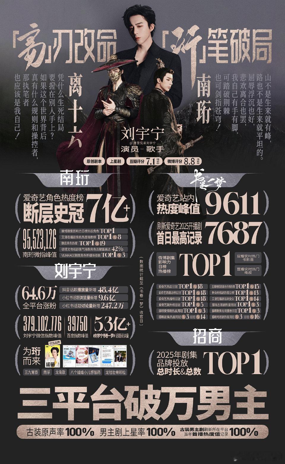 2025最高产艺人摩登兄弟宁哥扛剧实绩没得说!2025年《折腰》《书卷一梦》连爆,达成“爱优腾三平台破万男主”,这高产高质的“破万保障”谁能不服!继续冲!刘宇宁