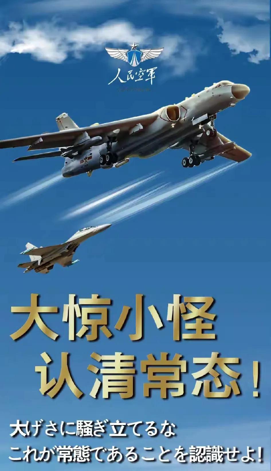 小日子确实慌了! 中俄第一次战略对表,开展联合巡航,虽然这不是第一次,但是用到“战略对表”这个词,是第一次。 中国空军中日双语发文,耐人寻味,就是怕小日子看不懂,警告小日子我们的巡航会常态化。 不要大惊小怪,小日子要慢慢习惯大国的战略轰炸机环日本巡航。 这次没有回头路了,小日子野心已昭然若揭,我们会盯死小日子的一举一动,如果军国主义胆敢抬头,嘿嘿,氵肖一火之!