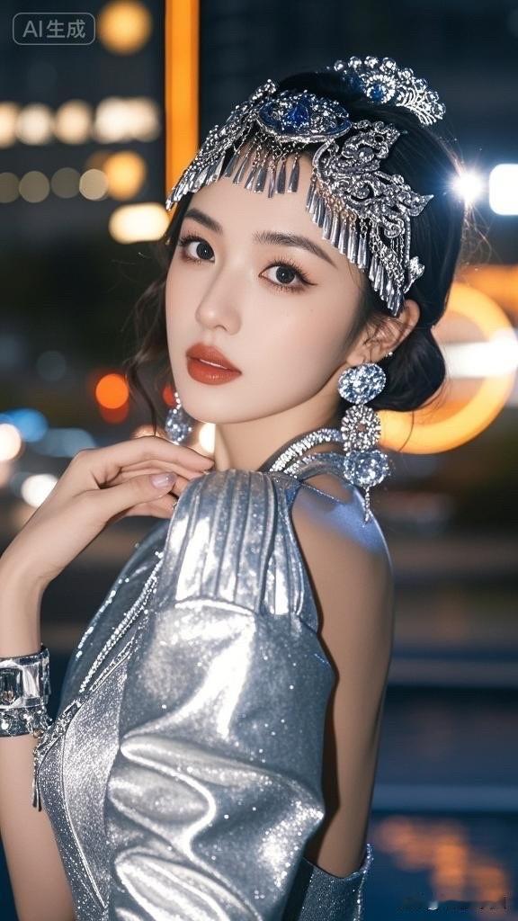 梦幻古风少女,银装华服,夜色中的惊艳之美