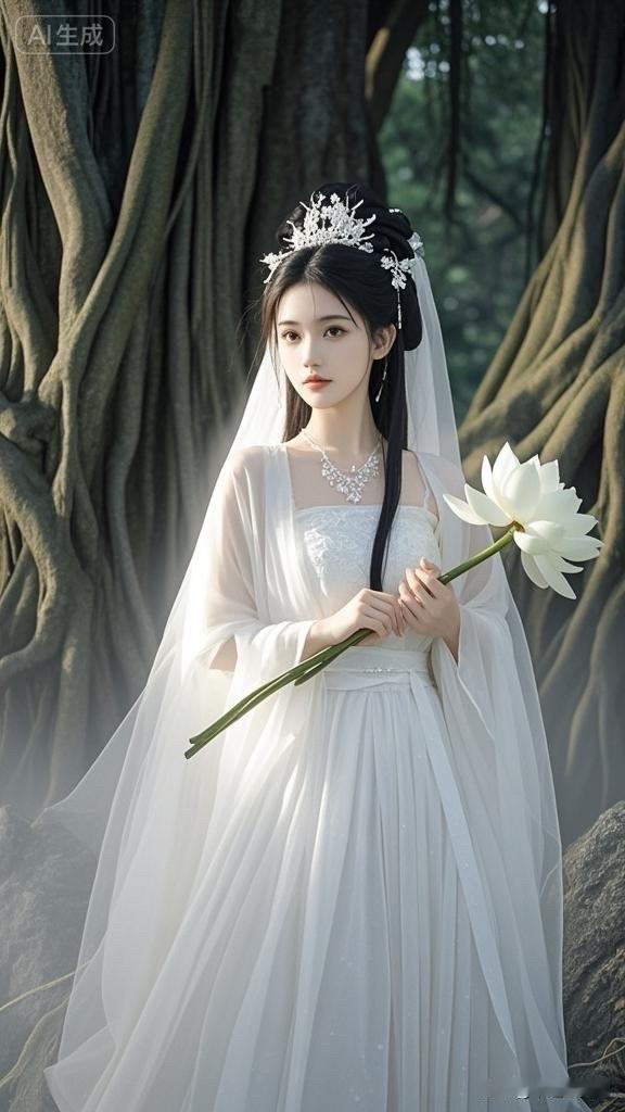 仙气飘飘的森林精灵,手持莲花,宛如童话中的公主。