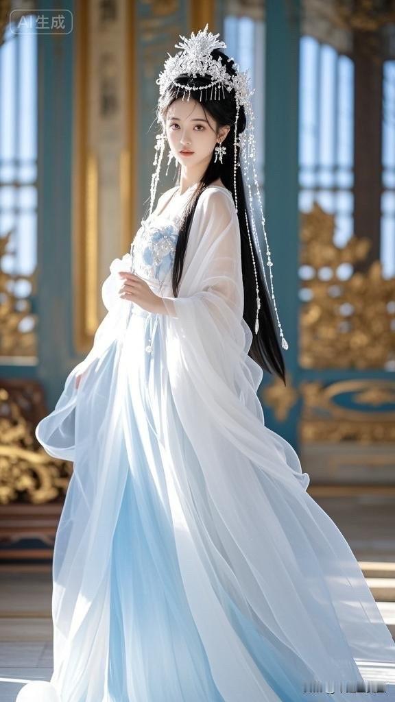 梦幻蓝调,唯美少女,风中飘逸,AI生成,惊艳视觉!