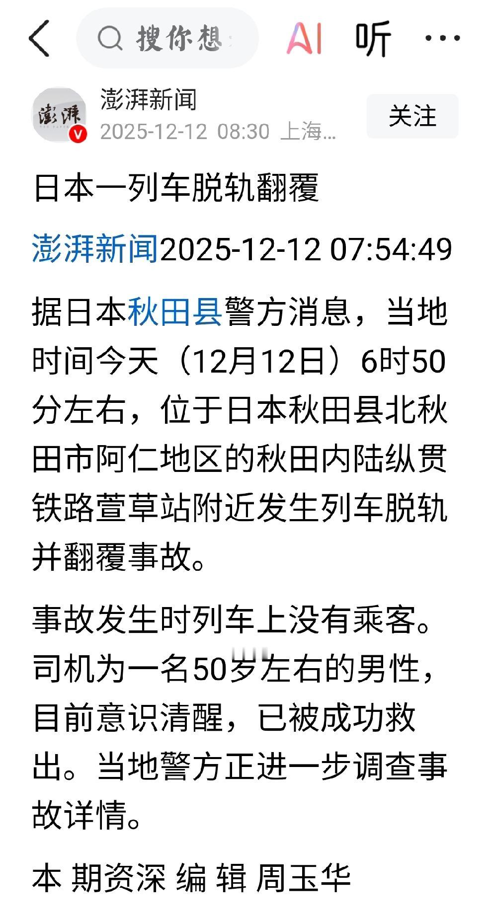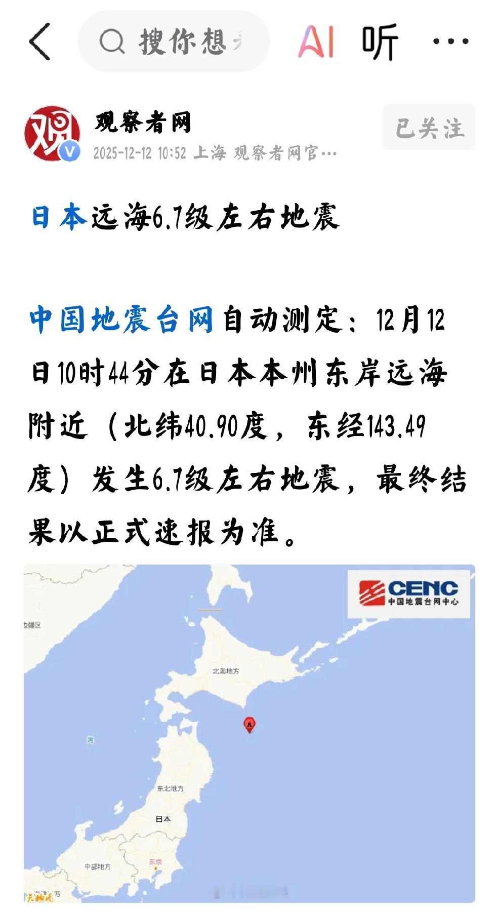 日本:是否是天灾人祸具象化? 个人观点:12日10时44分,日本远海发生6.7级地震;12日,8时左右,日本火车脱轨,看日本气象预测报导,日本未来将迎来后续的灾难。 个人观点:这不会是日本连续进行核试验的后果吧?