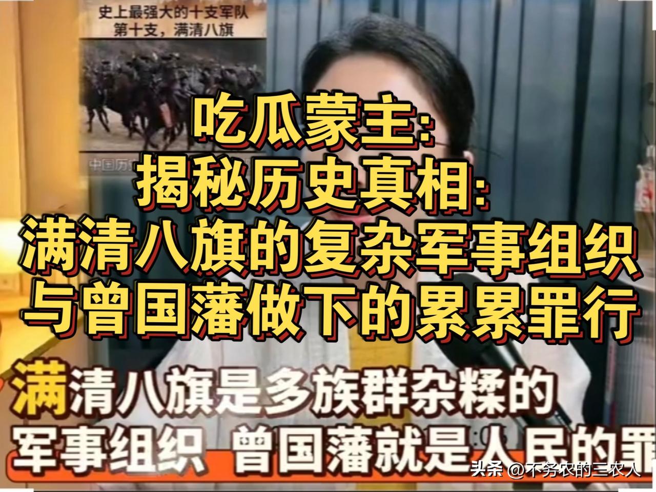 问:吃瓜蒙主把历代王朝都批判了一番,为何唯独在批判满清时,这“尸体”竟竟然动了? 答:只因当初(辛亥革命)未能将这“尸体”清理妥当,使得尸上的蛆虫不断繁衍,数量愈发增多,大有“诈尸”的征兆。 除恶务尽是对历史负责之举,前辈未能完成之事,我辈有义务、有责任让满清彻底湮灭于历史的废墟之中。 而吃瓜盟主便是那警醒众人的吹哨人。